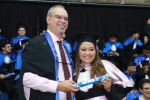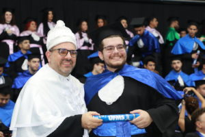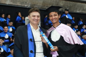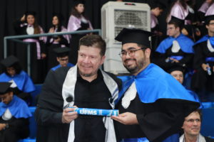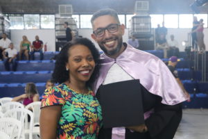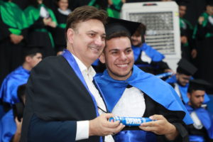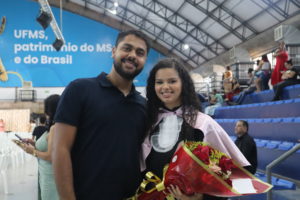 Alessandro Stuani concluiu o curso de Administração e, na cerimônia de colação, estava acompanhado pela família que veio de São Gabriel do Oeste para a comemoração. “Passei por muitos altos e baixos, quis até desistir, mas minha família que está aqui hoje sempre me apoiou e me incentivou a continuar. Esse momento foi muito esperado”, enfatiza.