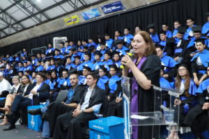 A licenciada em Pedagogia Carla de Rezende Souza discursou como representante dos estudantes “É com grande honra e emoção que compartilho esse momento especial com cada um de vocês. Enfrentamos juntos jornadas, mas também crescimento pessoal inigualável. Ao olharmos para trás tivemos não apenas diplomas, mas trajetórias transformadas”, disse.