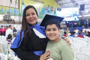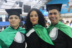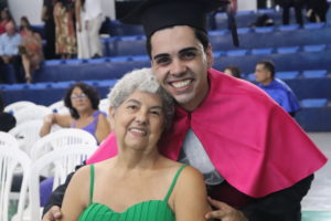 Acompanhada dos pais e do filho, Lourdes Rodrigues finalizou o curso de Tecnologia em Educação e Processos de Trabalho: Alimentação Escolar. “Depois de muita luta, cheguei nesse momento tão gratificante. Ao longo do caminho, até achei que não iria conseguir. Mas insisti e concretizei esse objetivo. Agora quero fazer o meu melhor como profissional”, relata. A mãe de Lourdes, Marlene Rodrigues, conta que acompanhou de perto o esforço da filha. “Esse momento foi muito esperado, muito batalhado. Ela estava trabalhando ao mesmo tempo, enfrentou muitas dificuldades. Estamos muito felizes por ver ela cumprir esse objetivo”, enfatiza.