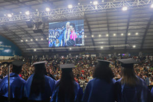 Na noite desta segunda-feira, 11, 374 estudantes das Faculdades de Computação (Facom), de Educação (Faed) e da Escola de Administração e Negócios (Esan) finalizaram a jornada na graduação com a cerimônia de colação de grau. A solenidade foi realizada no Ginásio do Moreninho, com transmissão ao vivo pelo canal da TV UFMS.