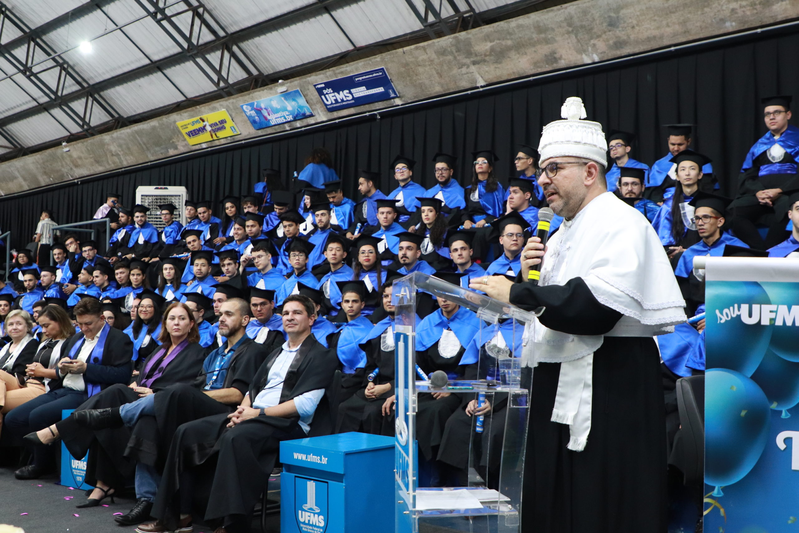 O pró-reitor de Assuntos Estudantis, Albert Schiaveto de Souza, destacou a missão de formação da UFMS. “É nossa missão desenvolver e socializar o conhecimento, formando profissionais qualificados. Nós estamos aqui para isso. Agora, a missão de vocês é agir como profissionais que transformam a sociedade e favorecer o desenvolvimento sustentável do país, vocês também têm essa responsabilidade. Sejam profissionais que fazem a diferença, onde estiverem”.