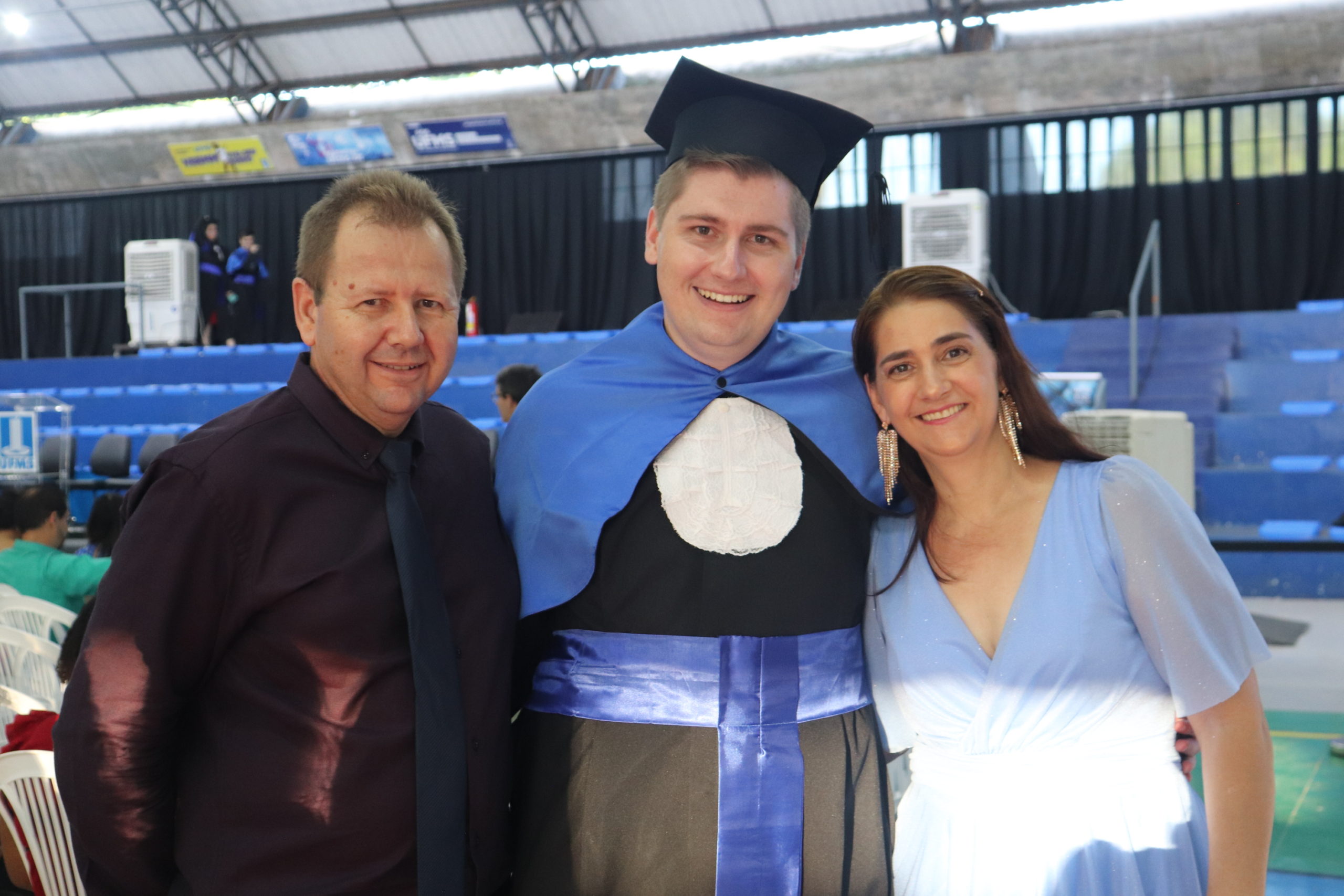 Alessandro Stuani concluiu o curso de Administração e, na cerimônia de colação, estava acompanhado pela família que veio de São Gabriel do Oeste para a comemoração. “Passei por muitos altos e baixos, quis até desistir, mas minha família que está aqui hoje sempre me apoiou e me incentivou a continuar. Esse momento foi muito esperado”, enfatiza.