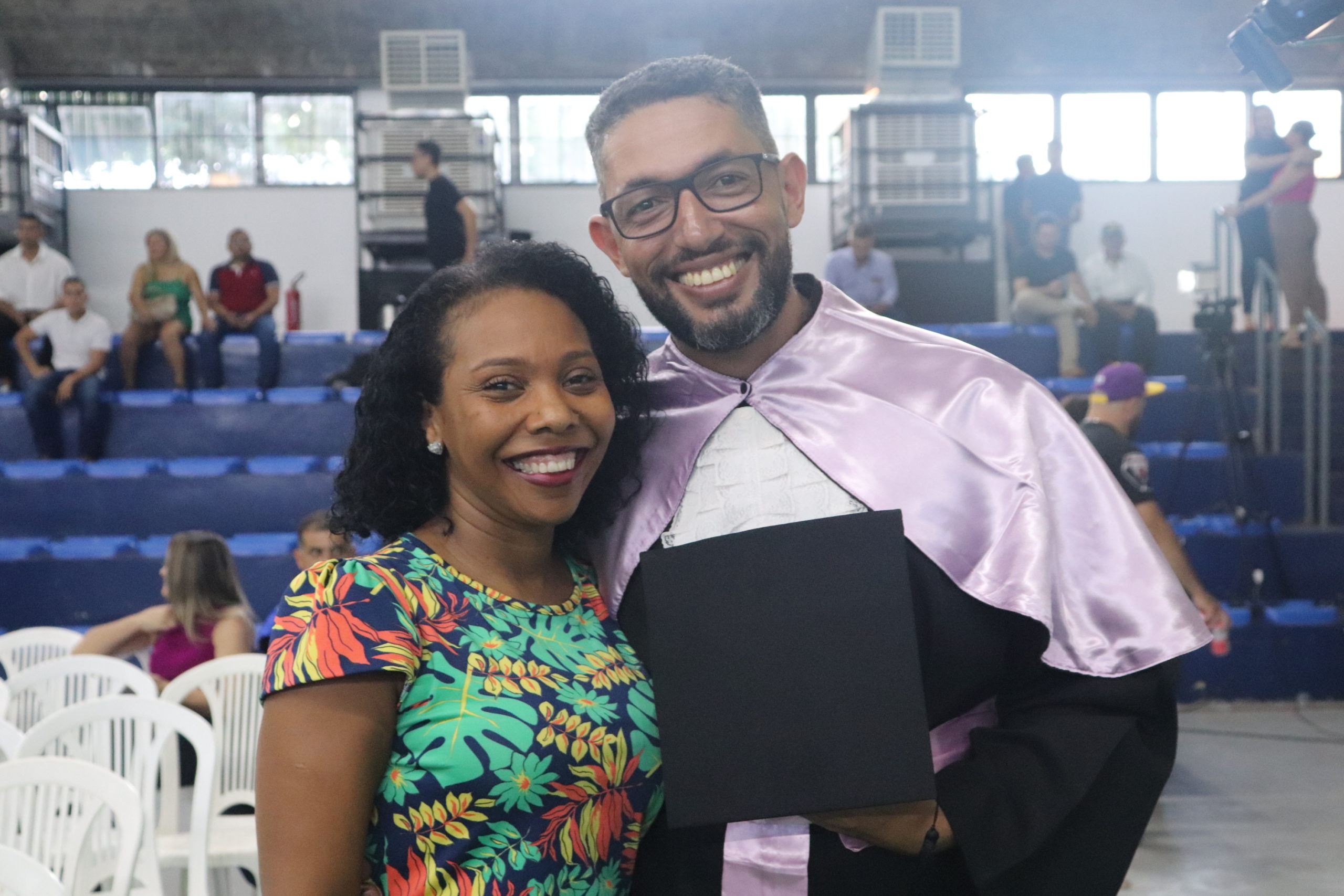 Acompanhada dos pais e do filho, Lourdes Rodrigues finalizou o curso de Tecnologia em Educação e Processos de Trabalho: Alimentação Escolar. “Depois de muita luta, cheguei nesse momento tão gratificante. Ao longo do caminho, até achei que não iria conseguir. Mas insisti e concretizei esse objetivo. Agora quero fazer o meu melhor como profissional”, relata. A mãe de Lourdes, Marlene Rodrigues, conta que acompanhou de perto o esforço da filha. “Esse momento foi muito esperado, muito batalhado. Ela estava trabalhando ao mesmo tempo, enfrentou muitas dificuldades. Estamos muito felizes por ver ela cumprir esse objetivo”, enfatiza.