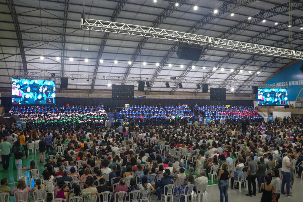 Na noite desta segunda-feira, 11, 374 estudantes das Faculdades de Computação (Facom), de Educação (Faed) e da Escola de Administração e Negócios (Esan) finalizaram a jornada na graduação com a cerimônia de colação de grau. A solenidade foi realizada no Ginásio do Moreninho, com transmissão ao vivo pelo canal da TV UFMS.