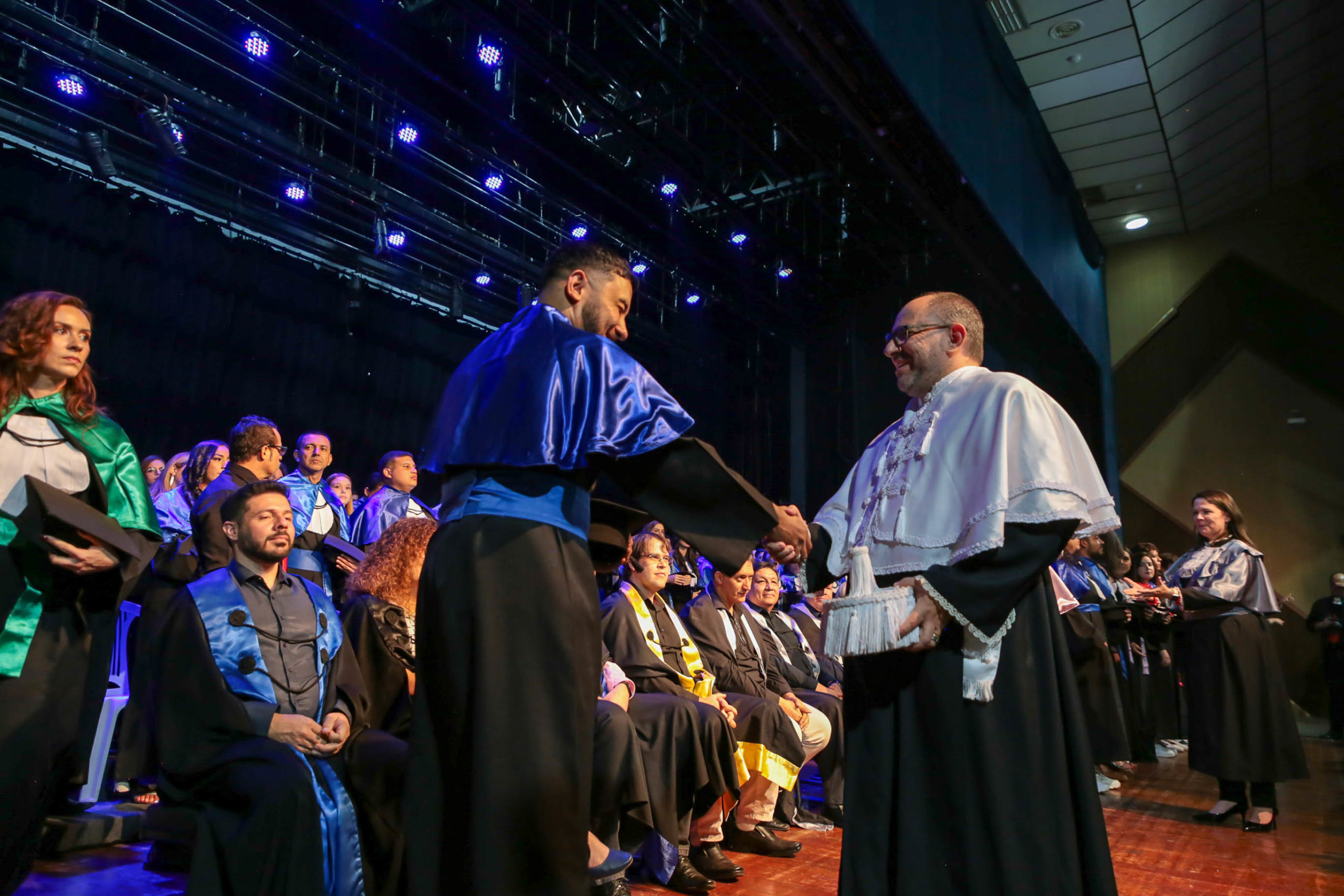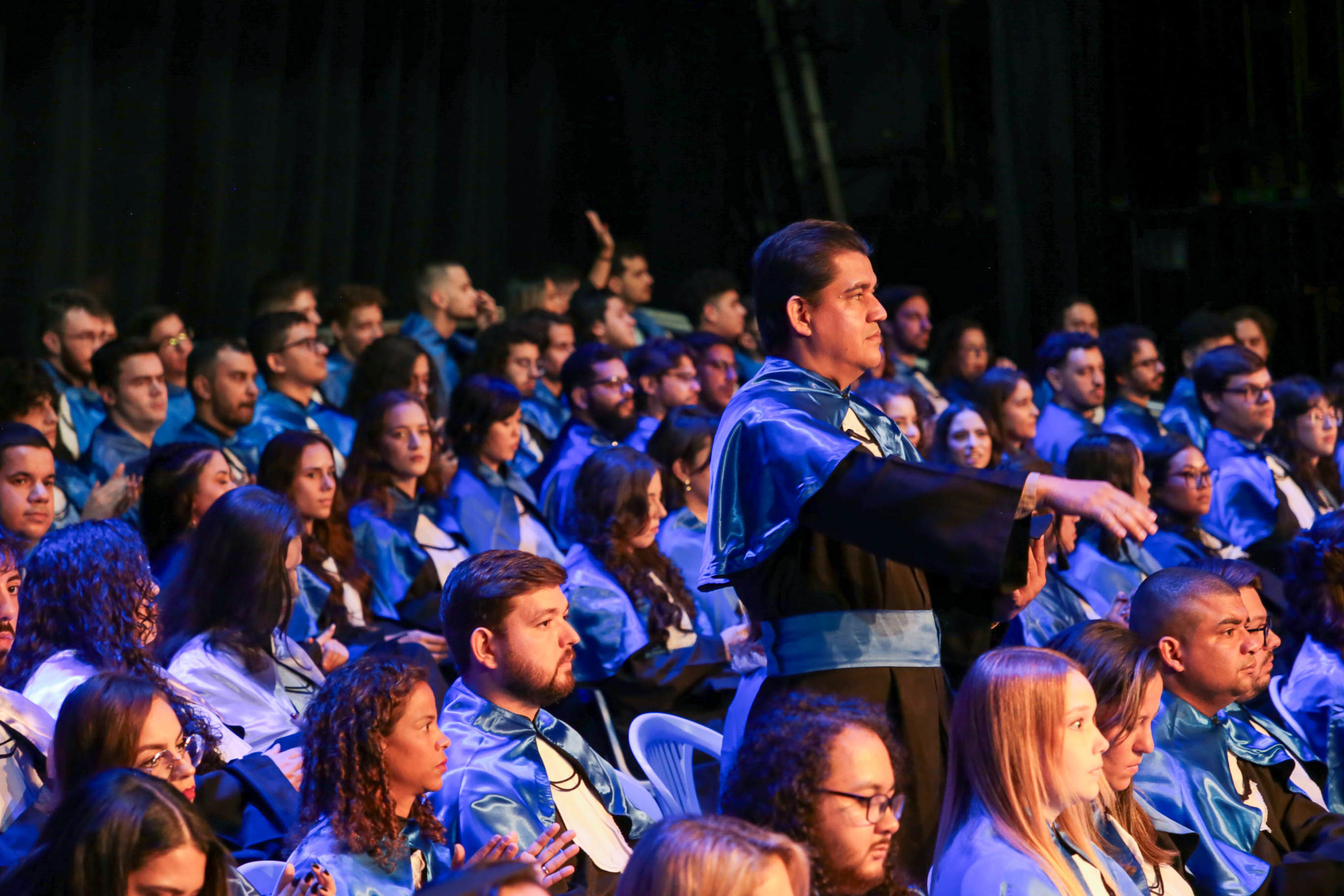 O reitor Marcelo Turine parabenizou os formandos e desejou sucesso nas próximas fases da vida. “Busquem ser felizes e sorrir sempre, isso é importante para fazer os próximos felizes e ter sucesso na profissão. Para nós, é um orgulho muito grande ter essa casa cheia e a Universidade viva dessa forma, com a presença de todos vocês. Desejo sucesso e parabéns por essa conquista, vocês são vitoriosos, perseverantes e resilientes. Contem com a UFMS e tenham orgulho de ter estudado em uma Universidade pública, gratuita, de qualidade e inclusiva”, comemorou.