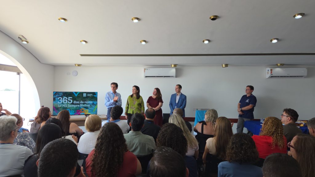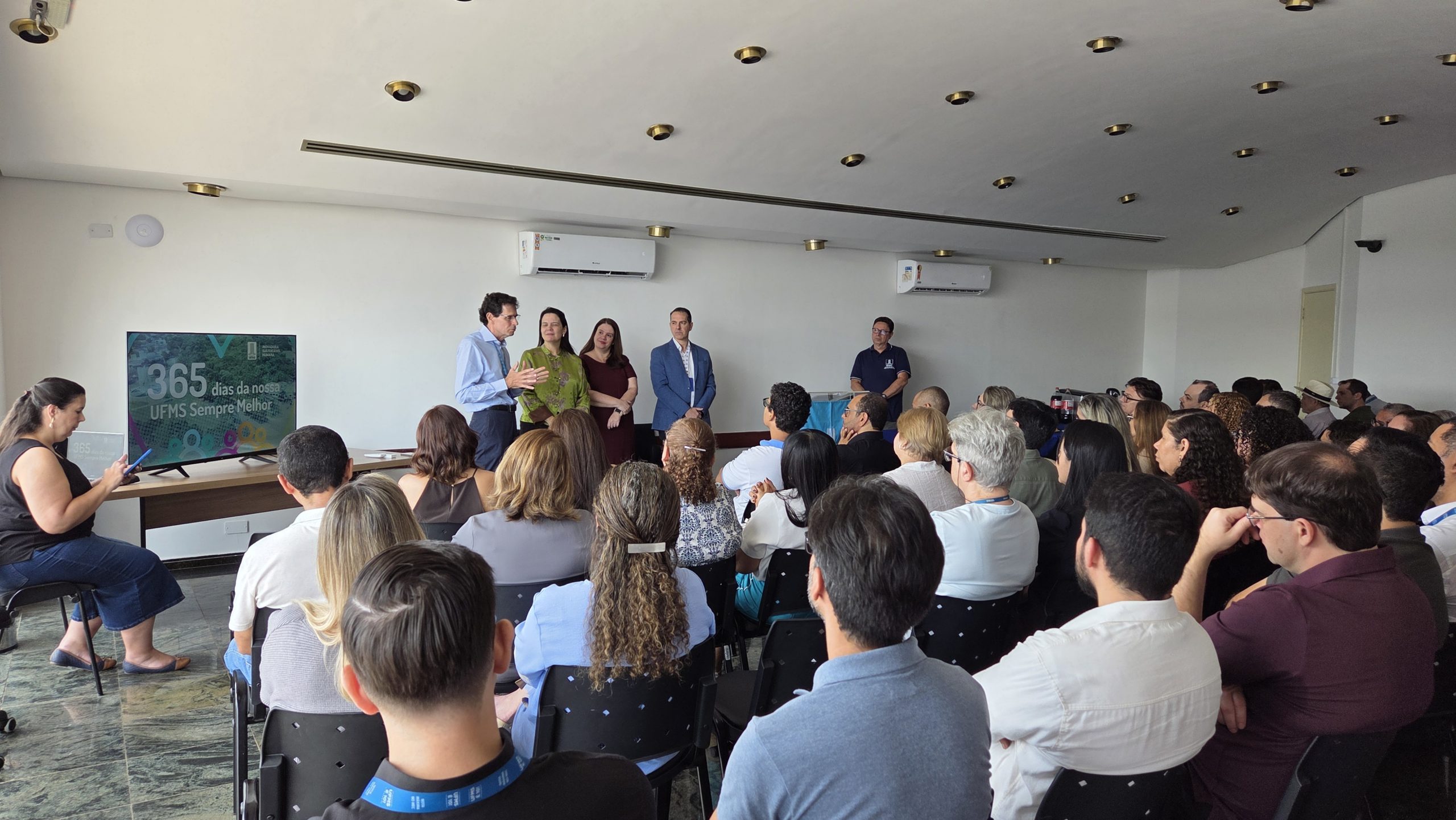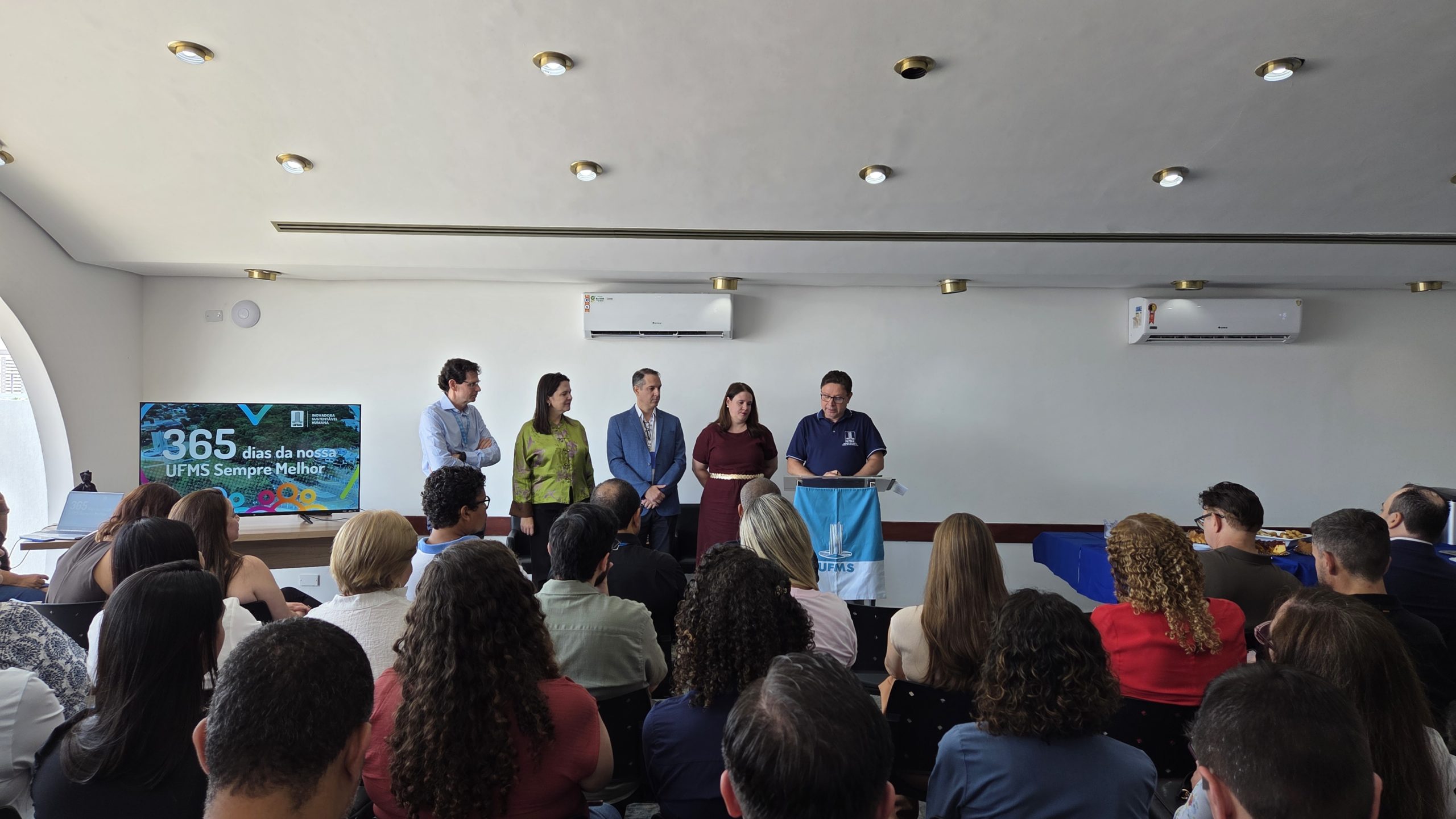 Como prestação de contas dos 365 dias de gestão, a reitora agradeceu toda equipe e ressaltou o quanto é importante o trabalho de todos. Foram apresentadas algumas das ações realizadas no período, como a elaboração do Plano de Desenvolvimento Institucional (PDI) 2025-2030, integrado ao Projeto Pedagógico Institucional da UFMS (PPI) e atualização de outros documentos; entrega de reformas, revitalizações e otimização de espaços físicos; a implantação da UFMS em Ação, com audiências públicas para participação da comunidade; a conquista do Prêmio Estrelas da Educação como melhor instituição pública na Educação a Distância; a articulação com órgãos públicos e privados, vereadores, prefeitos, deputados, senadores e com o Governo Federal para novas parcerias; entre outras iniciativas.