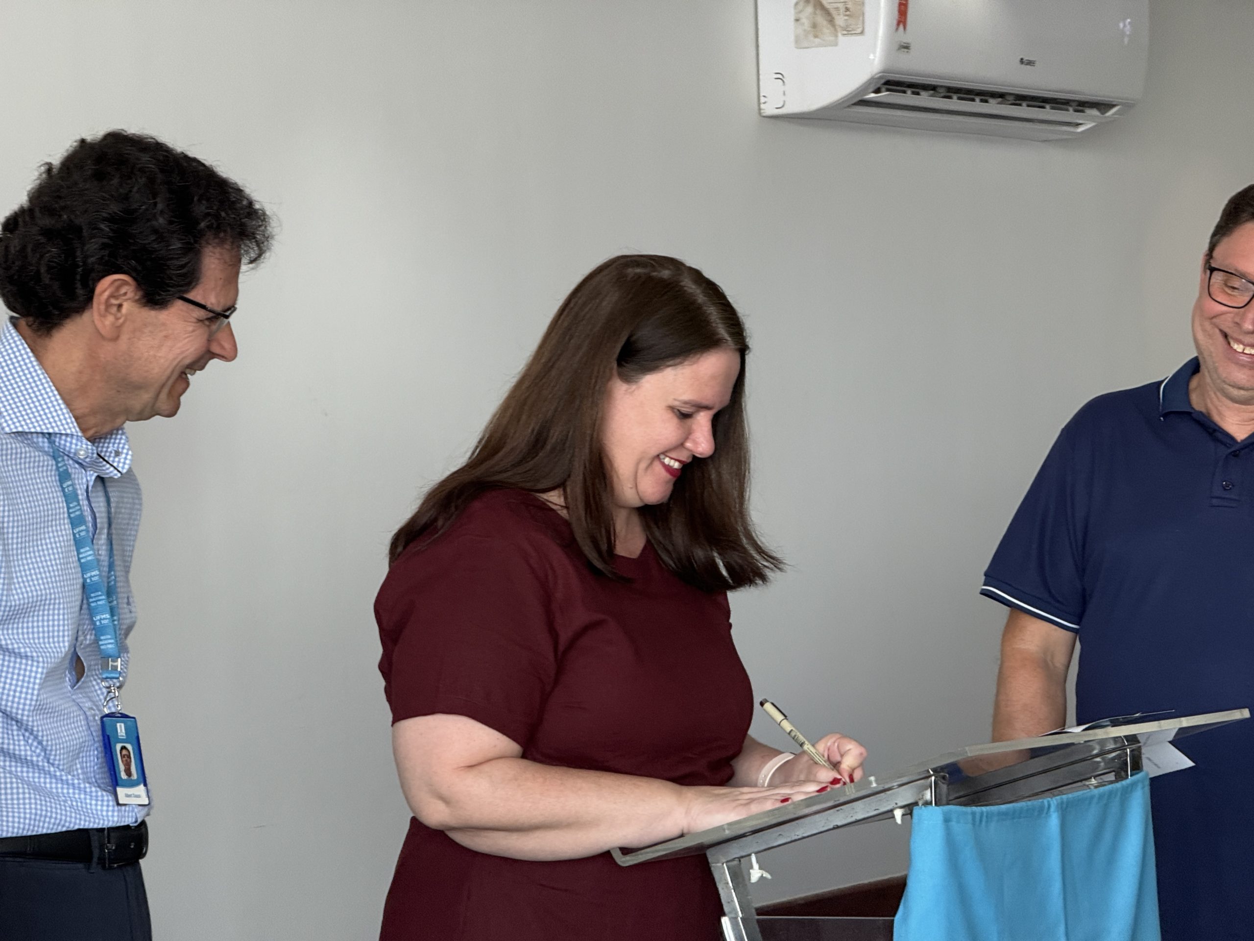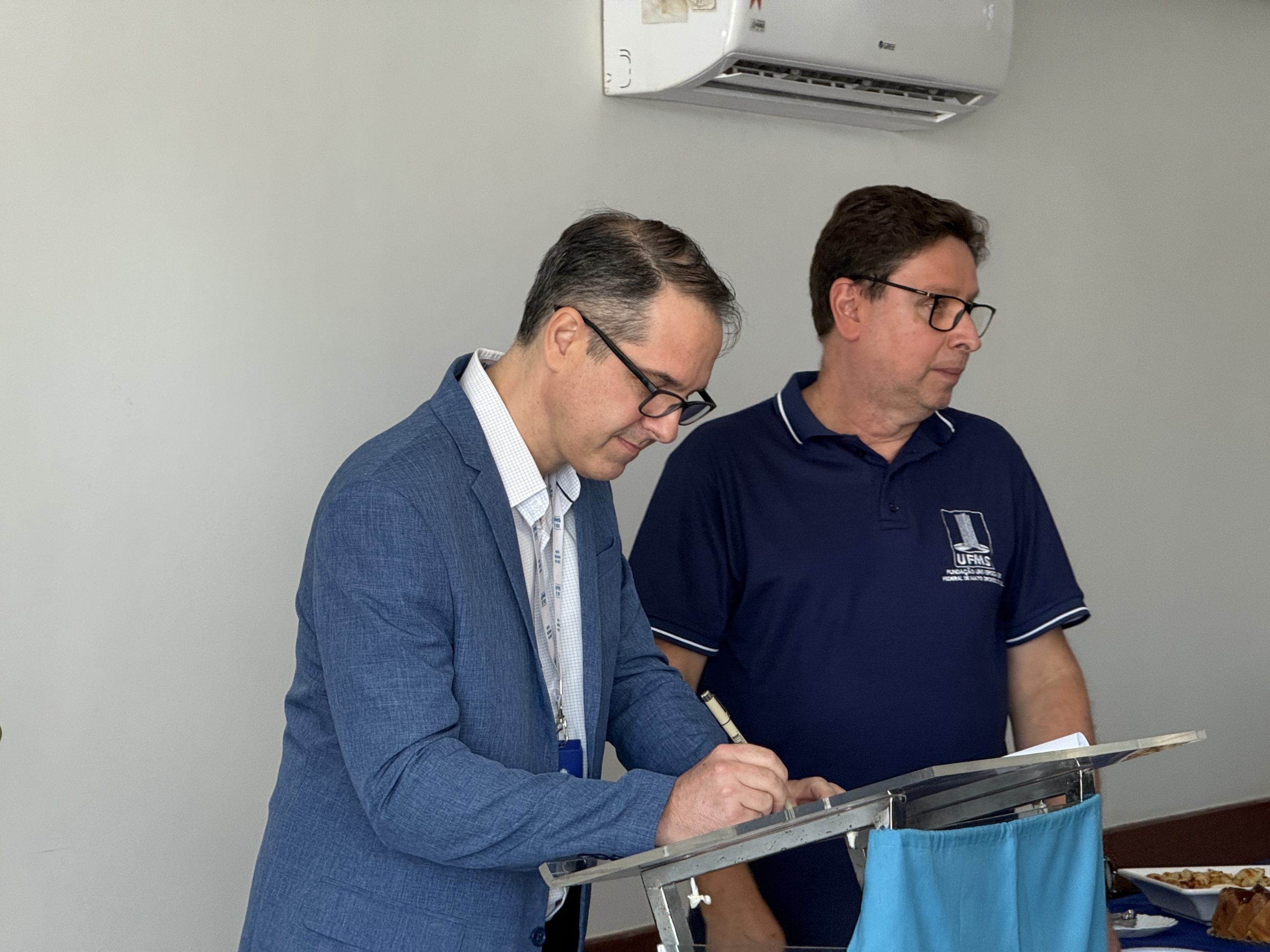 O evento foi realizado na nova sede da Fundação de Apoio à Pesquisa, ao Ensino e à Cultura (Fapec), com a presença do diretor-presidente Marcos Vinicius da Cruz Coelho; o diretor Administrativo e Financeiro, Carlos Henrique Vaz de Carvalho Rabello; o diretor de Pesquisa, Desenvolvimento e Inovação, Ruy Alberto Corrêa Filho; e o presidente e ao vice-presidente do Conselho Curador, Luciano Gonda e Marcelo Turine, respectivamente.