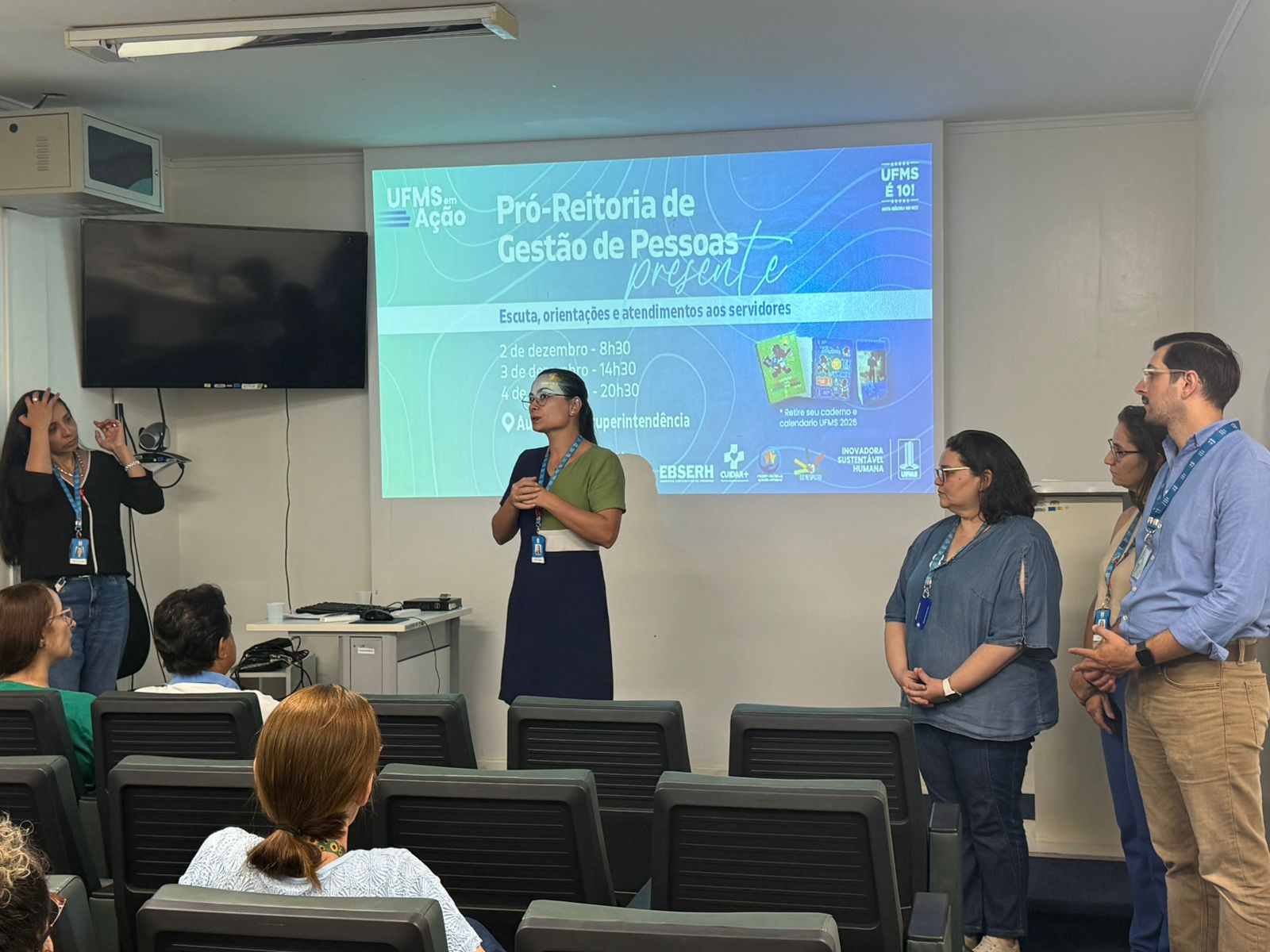 A Pró-Reitoria de Gestão de Pessoas (Progep) realizou, nos dias 2, 3 e 4 de dezembro, três encontros no Hospital Universitário Maria Aparecida Pedrossian (Humap-UFMS/Ebserh), como parte da ação Progep Presente. Integrante do programa UFMS em Ação, a iniciativa busca fortalecer o diálogo com as equipes e ampliar o acesso às informações sobre gestão de pessoas em todas as unidades da Universidade.