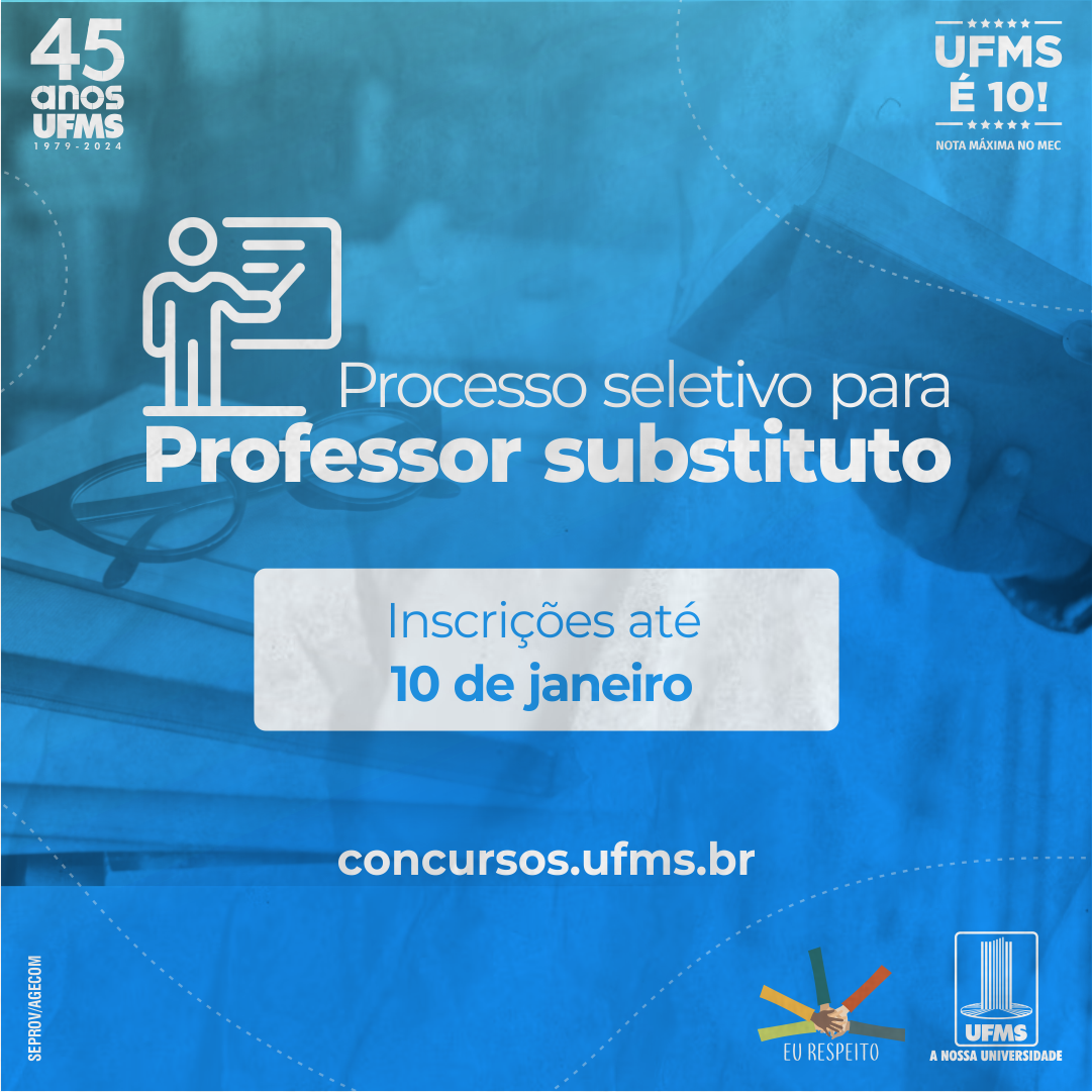 O pró-reitor de Gestão de Pessoas em exercício, Everton Lucas Amorim, enfatiza que a seleção oferece a possibilidade de agregar experiência profissional. “Assumir o papel de professor substituto na UFMS representa uma valiosa oportunidade para enriquecer o currículo e adquirir incrível experiência na docência em uma instituição que detém nota máxima de excelência em pesquisa, ensino, extensão e inovação. Estendemos o convite para todos os interessados, para que participem dessa oportunidade e contribuam com o time da UFMS”, ressalta.