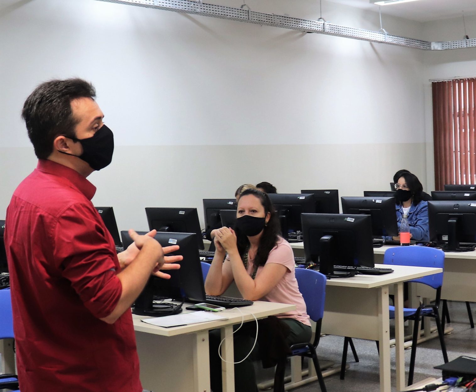 A capacitação está sendo realizada no laboratório de informática, localizado no térreo do prédio do Complexo EAD e Escola de Extensão, na Cidade Universitária