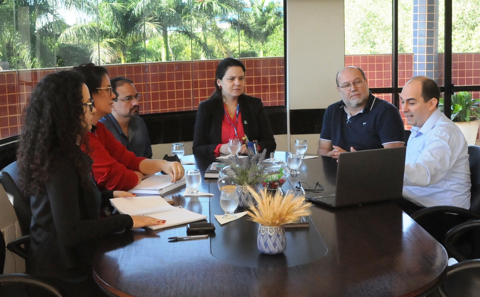 O professor Martin Conda-Sheridan do Centro Médico da Universidade de Nebraska (EUA) foi recebido hoje (19) pela manhã pela Vice-reitora Camila Ítavo. Na reunião estiveram presentes também o Diretor e o professor do Instituto de Química (Inqui), Lincoln de Oliveira e Adilson Beatriz, e a chefe e a técnica administrativa da Divisão de Relações Internacionais da Universidade, Carolina Nantes e Flávia Paiva.
