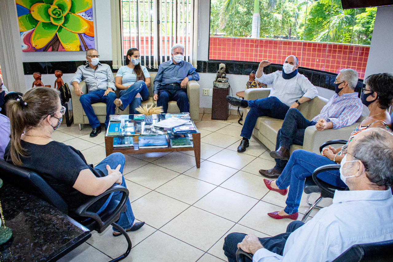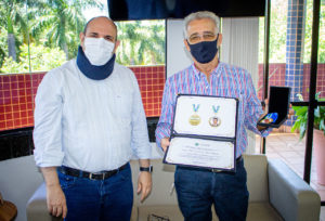 Nesta quarta-feira, 4, o reitor Marcelo Turine e a vice-reitora Camila Ítavo receberam o professor Eronides de Jesus Bíscola. O professor foi homenageado pela Assembleia Legislativa de Mato Grosso do Sul com a Comenda Pedro Pedrossian, em sessão solene virtual realizada no dia 21 de agosto, data em que se comemora o Dia do Ensino Superior de MS.