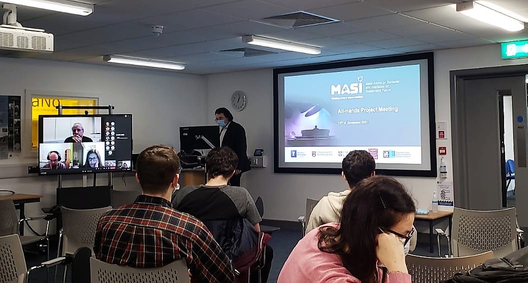 Os professores Khlobystov e Jesum convidaram Cauê e Heberton para uma reunião sobre um projeto de grande porte relacionado à construção de eletro e fotocatalisadores de resolução atômica, que incluiu a participação de importantes cientistas das Universidades de Nottingham, Cardiff, Birmingham e Cambridge. “A missão deu visibilidade às atividades desenvolvidas pela UFMS no Instituto de Física, dentro do Capes-PrInt e incluiu a UFMS em discussões com renomadas instituições de pesquisa do Reino Unido”, comenta Cauê. “Nossa inclusão nestas discussões mostra que temos condições de transferir know-how para as melhores universidades do mundo. Não conseguimos concorrer com equipamentos e infraestrutura, mas concorremos com boas ideias”, acrescenta.
