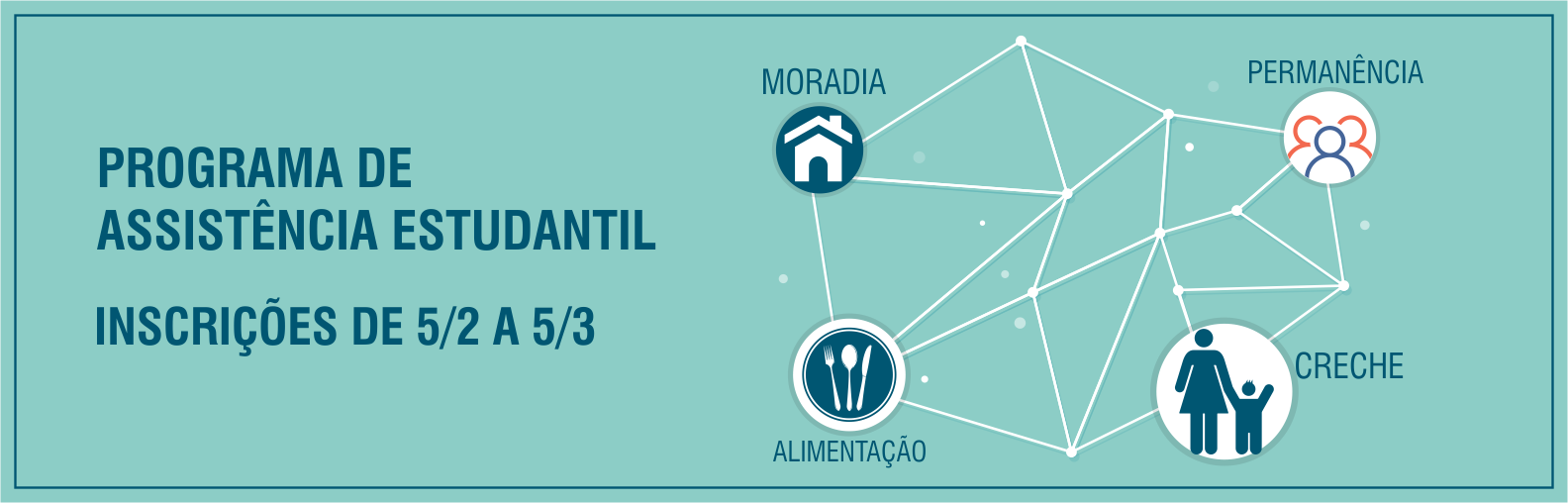 A Pró-Reitoria de Assuntos Estudantis (Proaes) publicou edital de abertura das inscrições para o processo seletivo de discentes dos cursos de graduação presencial nas seguintes ações do Programa de Assistência Estudantil da UFMS para 2018: auxílio-permanência, auxílio-alimentação, auxílio-moradia e auxílio-creche.