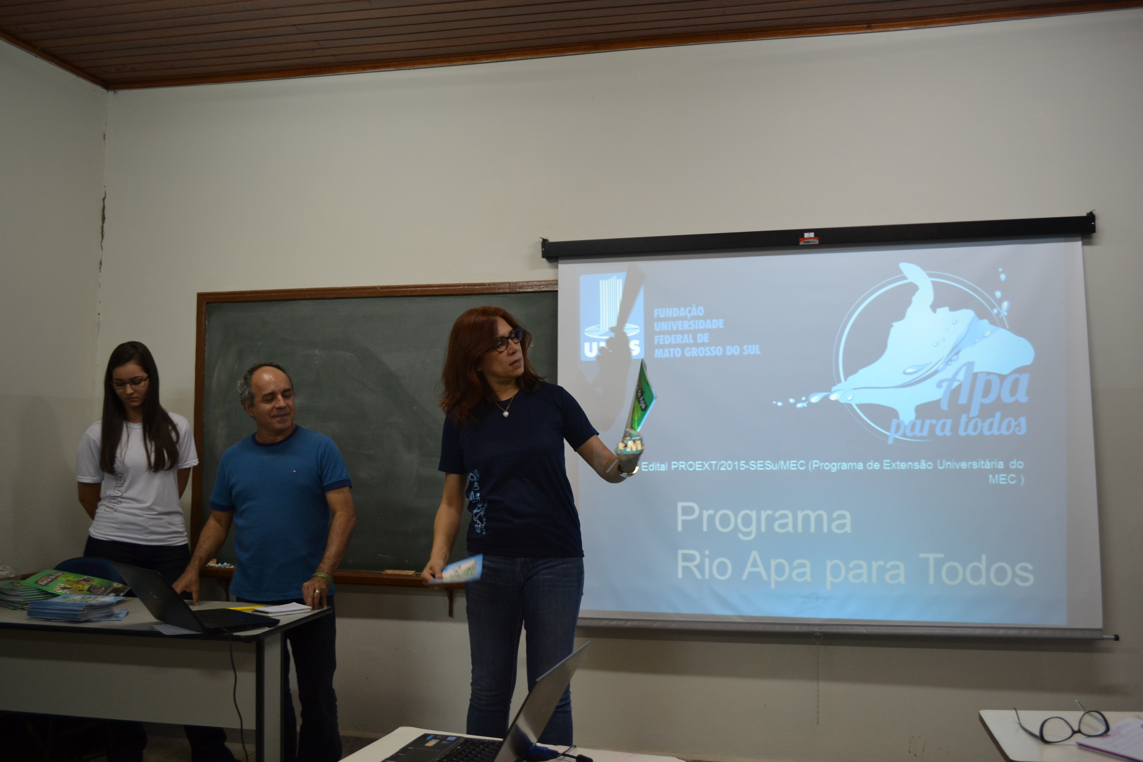 O Rio Apa para Todos, coordenado pela professora Synara Broch, é uma ação de extensão elaborada por uma equipe multidisciplinar da UFMS, que desenvolve atividades de monitoramento de águas, de educação ambiental e de práticas de extensão acadêmica com vistas ao fortalecimento da gestão integrada de recursos hídricos na bacia do rio Apa (que delimita parte da fronteira do Brasil com o Paraguai), durante o biênio 2015-2016. A equipe é formada por professores, alunos de graduação e pós-graduação.