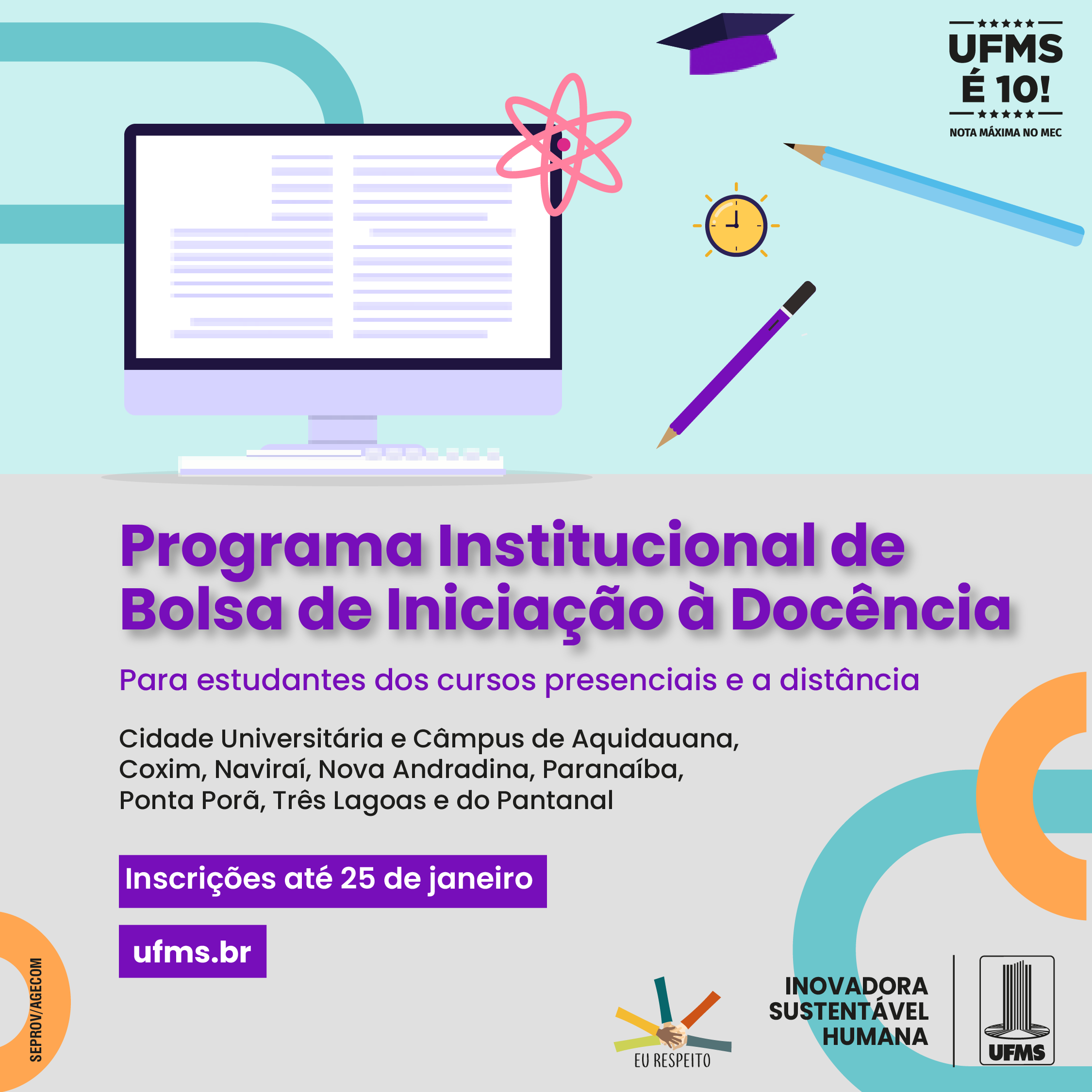 Professores efetivos da UFMS também podem participar do processo seletivo para atuação como coordenador de área do Pibid até o dia 27 de janeiro. As inscrições devem ser realizadas no Sigproj e a bolsa possui o valor de R$ 2 mil.