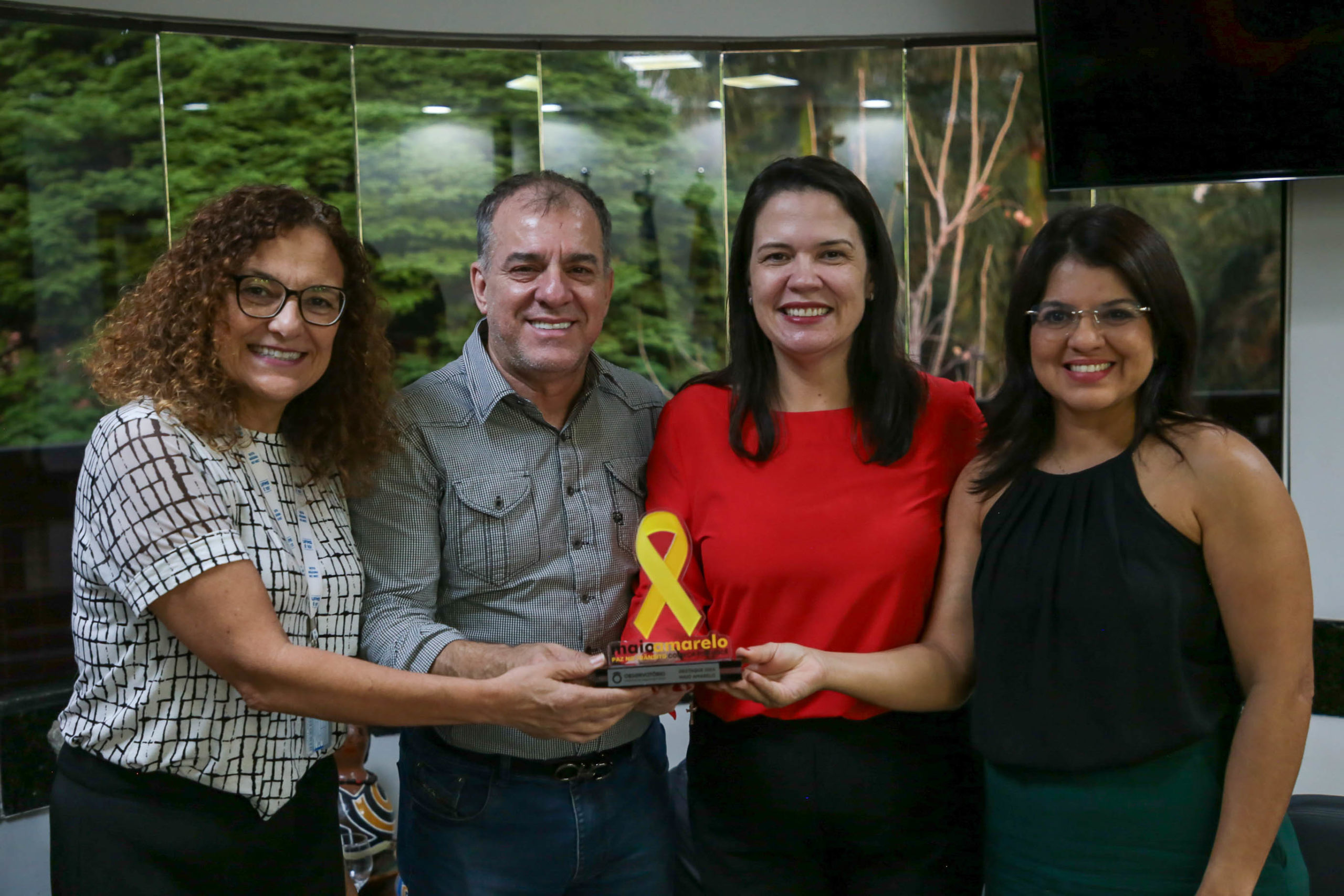 A vice-reitora Camila Ítavo recebeu o troféu de reconhecimento pelo projeto de extensão Rádio e TV para a Educação e Conscientização no Trânsito – Tá na Rua nesta terça-feira, 10, que foi entregue pela diretora de Educação no Trânsito do Detran-MS, Andrea Moringo. A iniciativa é coordenada pela UFMS e desenvolvida em parceria com o Departamento Estadual de Trânsito de Mato Grosso do Sul (Detran-MS), a Fundação Estadual Jornalista Luiz Chagas de Rádio e TV Educativa (Fertel) e a Fundação de Apoio à Pesquisa, ao Ensino e à Cultura.