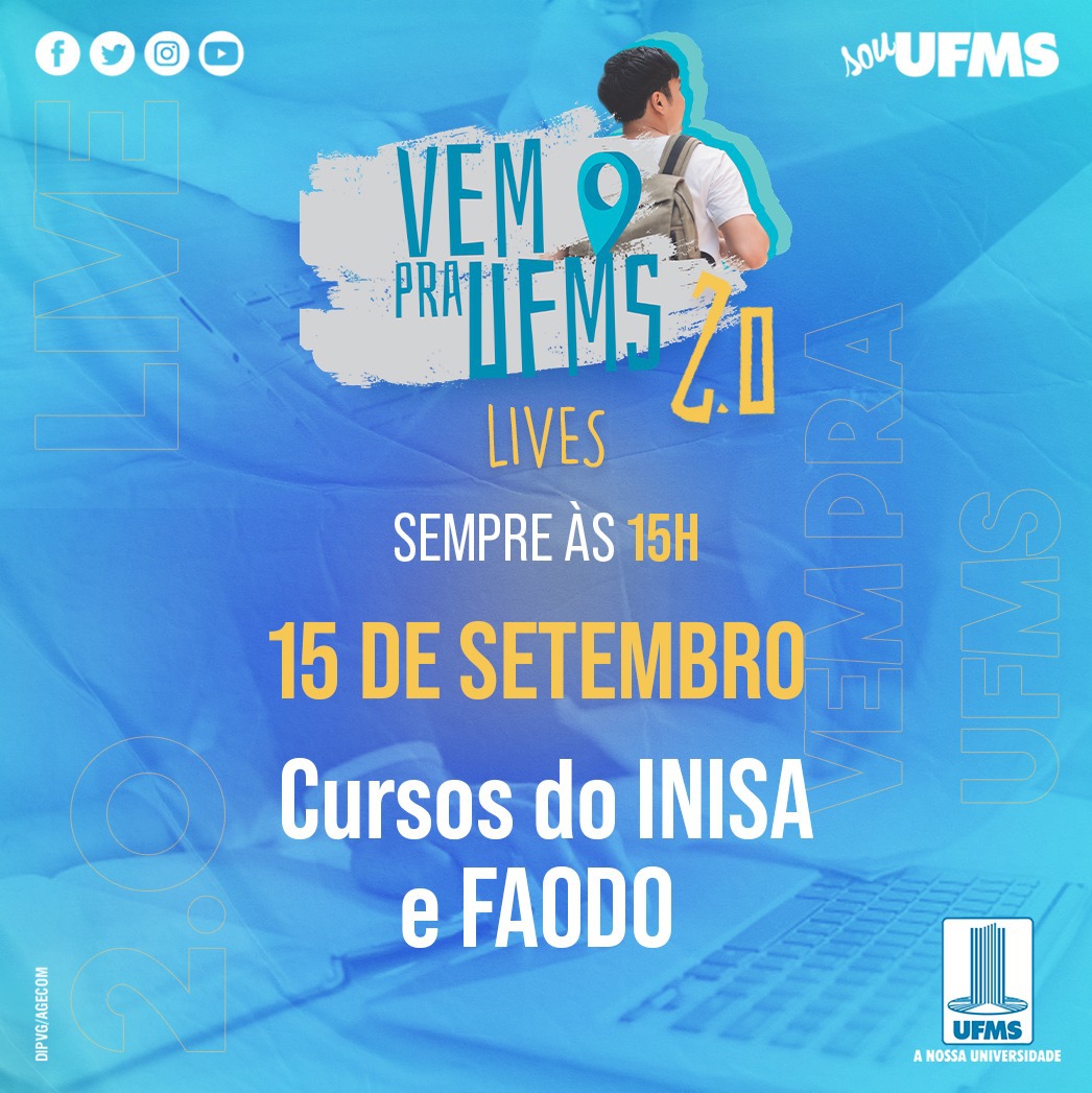 Em mais uma etapa de lives, o Programa Vem pra UFMS dá continuidade ao projeto de apresentar de forma objetiva os cursos e as formas de ingresso na Instituição.
