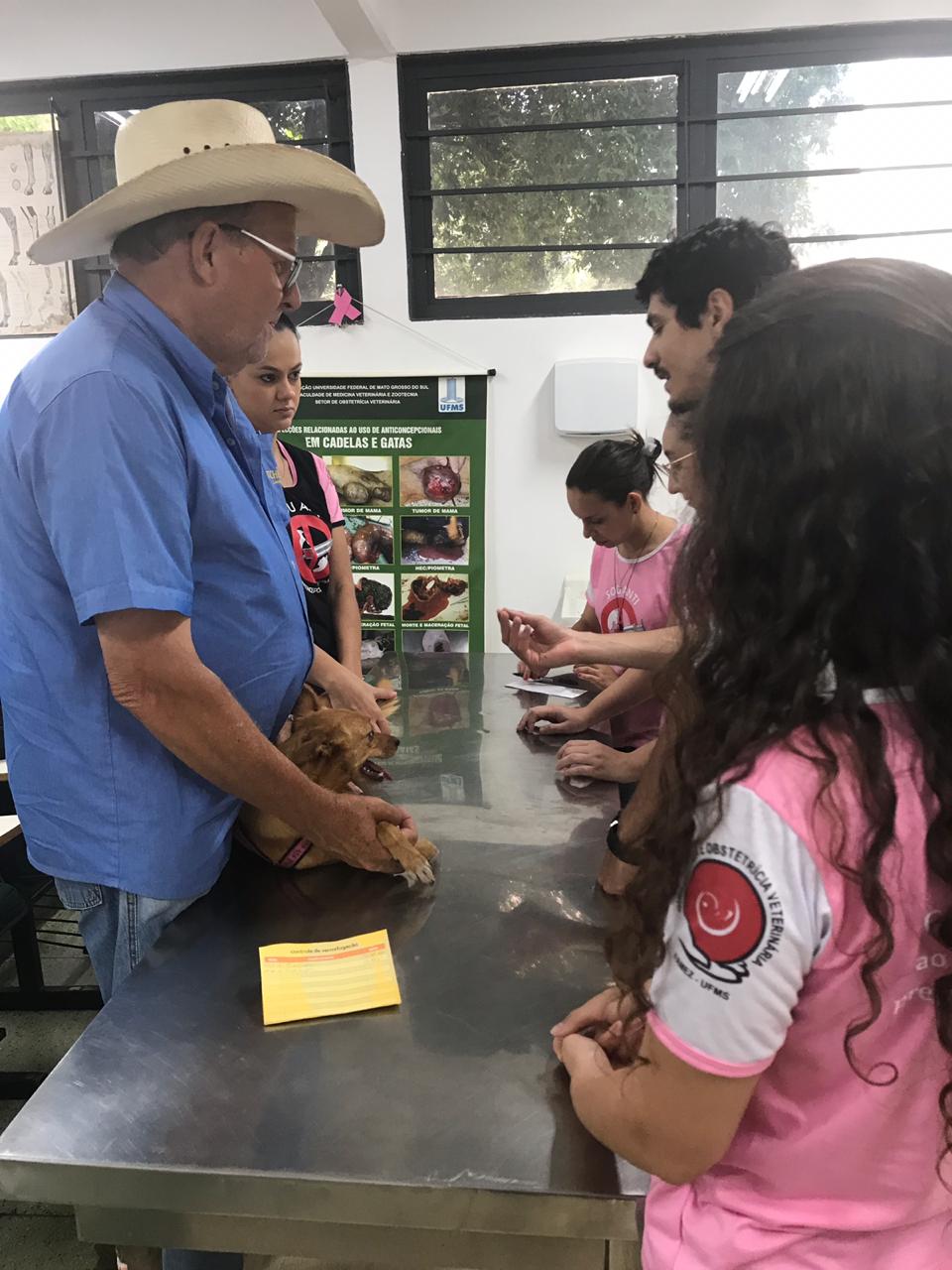“Durante todo o dia, orientamos donos de várias cadelas e gatas. A prevenção é um ato de amor e os proprietários precisam ser esclarecidos sobre a doença que tem alta incidência”, conta a acadêmica do quinto ano de Medicina Veterinária Wiviane Tiburço. Durante a ação, os estudantes passam informações sobre o uso indiscriminado dos anticoncepcionais injetáveis e os malefícios decorrentes disso, entregam material informativo e também ensinam como fazer a palpação. “Se o animal for tratado com anticoncepcional injetável, recomendamos a suspensão e troca por tratamentos alternativos como a castração e o uso de anticoncepcionais orais. Inclusive falamos sobre o projeto de castração, realizado pela Famez. Explicamos que, quanto mais tempo demora para castrar, maior a chance de desenvolver a doença”, destaca Wiviane.