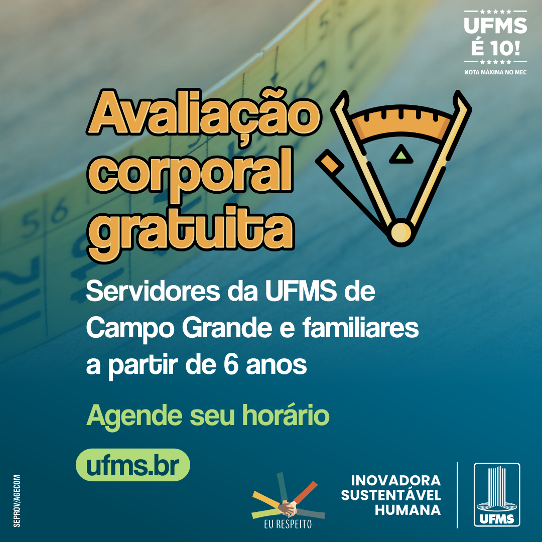 Estão abertas as inscrições para professores e técnicos-administrativos da Cidade Universitária participarem do projeto de extensão Avaliação da composição corporal, aptidão e atividade física da comunidade da UFMS (BIA Brasil). São oferecidas, de forma gratuita, aos servidores e seus familiares a partir de seis anos de idade, avaliações completas que possuem alto custo se realizadas em outros locais, e informações sobre seus indicadores de saúde, que poderão ser utilizados posteriormente em consultas com outros profissionais da área.