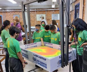 “Mesmo em um cenário de pandemia, conseguimos alcançar o objetivo do projeto, apresentando e debatendo com os professores temáticas e atividades inseridas nos conteúdos, em etapas individuais. A utilização da caixa foi totalmente prática, pois executamos atividades a partir de um conteúdo pré-determinado pelo professor, a ser apresentado aos alunos antes do uso da ferramenta de realidade aumentada. Essas atividades aconteceram no Labcartop, localizado na unidade 2 do CPAQ, assim como as filmagens de conteúdo de revisão de cada professor com seu planejamento, e, após edição dos vídeos, a disponibilização aos alunos (on-line). Apresentamos também aos professores, a parte técnica da caixa de areia, desde as configurações, calibração do datashow e do kinect e do Projetor, organização da areia na caixa e do Software SARndbox”, finaliza Gustavo.