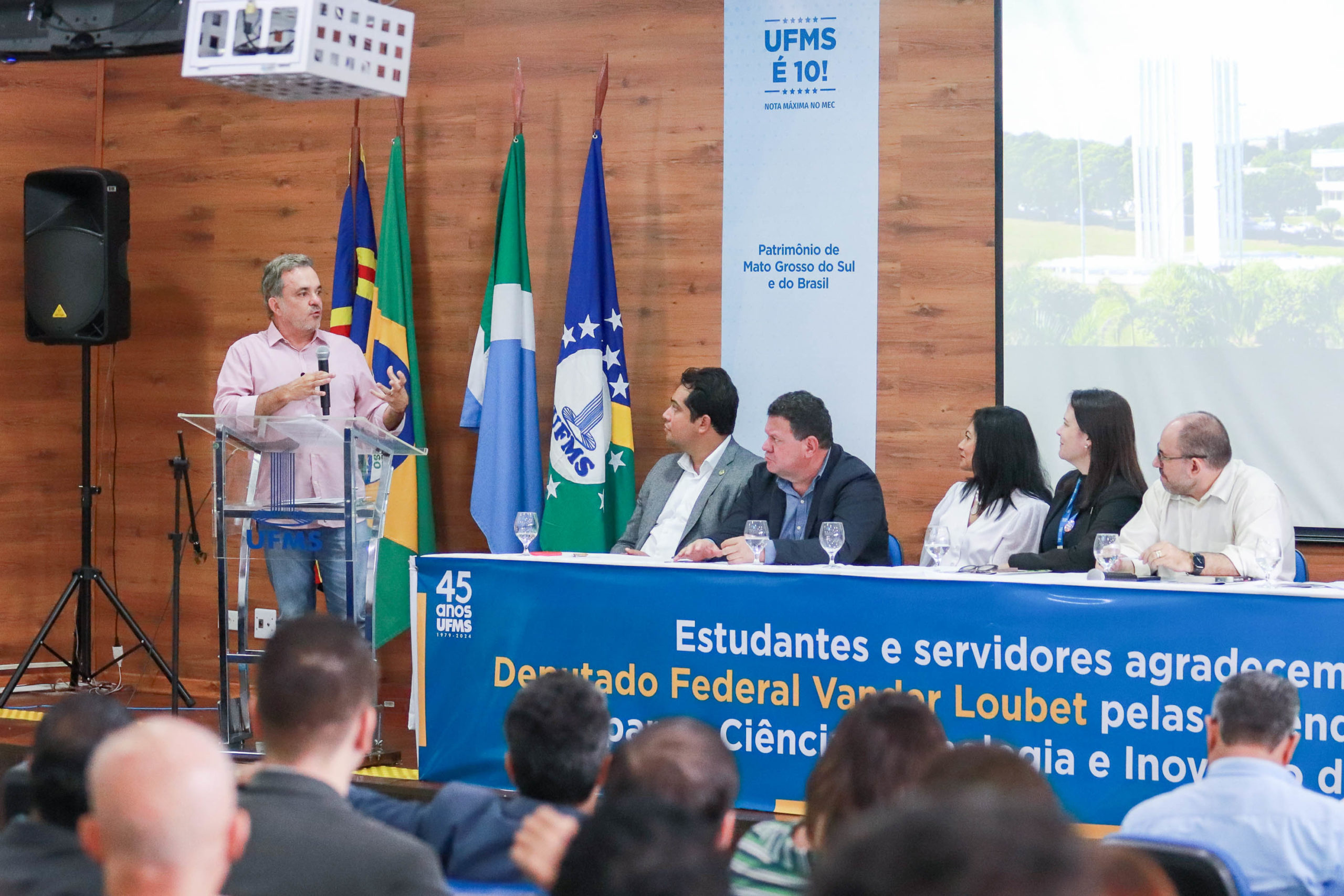 Nesta segunda-feira, 25, a UFMS apresentou os projetos apoiados por emendas individuais direcionadas pelo deputado federal Vander Loubet no âmbito da Ciência, Tecnologia e Inovação. O investimento totaliza mais de R$ 2 milhões e beneficiará mais de 1 milhão de pessoas.