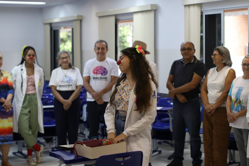 “Sempre no nosso encerramento a gente pensa em fazer alguma atividade diferente, mas a gente nunca deixa de ter atividades que vão estimular a memória dos idosos. Então, até nas propostas das atividades que nós fizemos tem isso como pano de fundo. A gente estava a todo momento tendo algum tipo de estimulação cognitiva, seja da imaginação, seja da memória de curto prazo. Parece uma coisa que é uma brincadeira, mas, por trás, a gente sempre está procurando estimular a cognição deles”, explicou a professora da Famed e coordenadora do projeto Memoridade, Rosimeire Seixas.