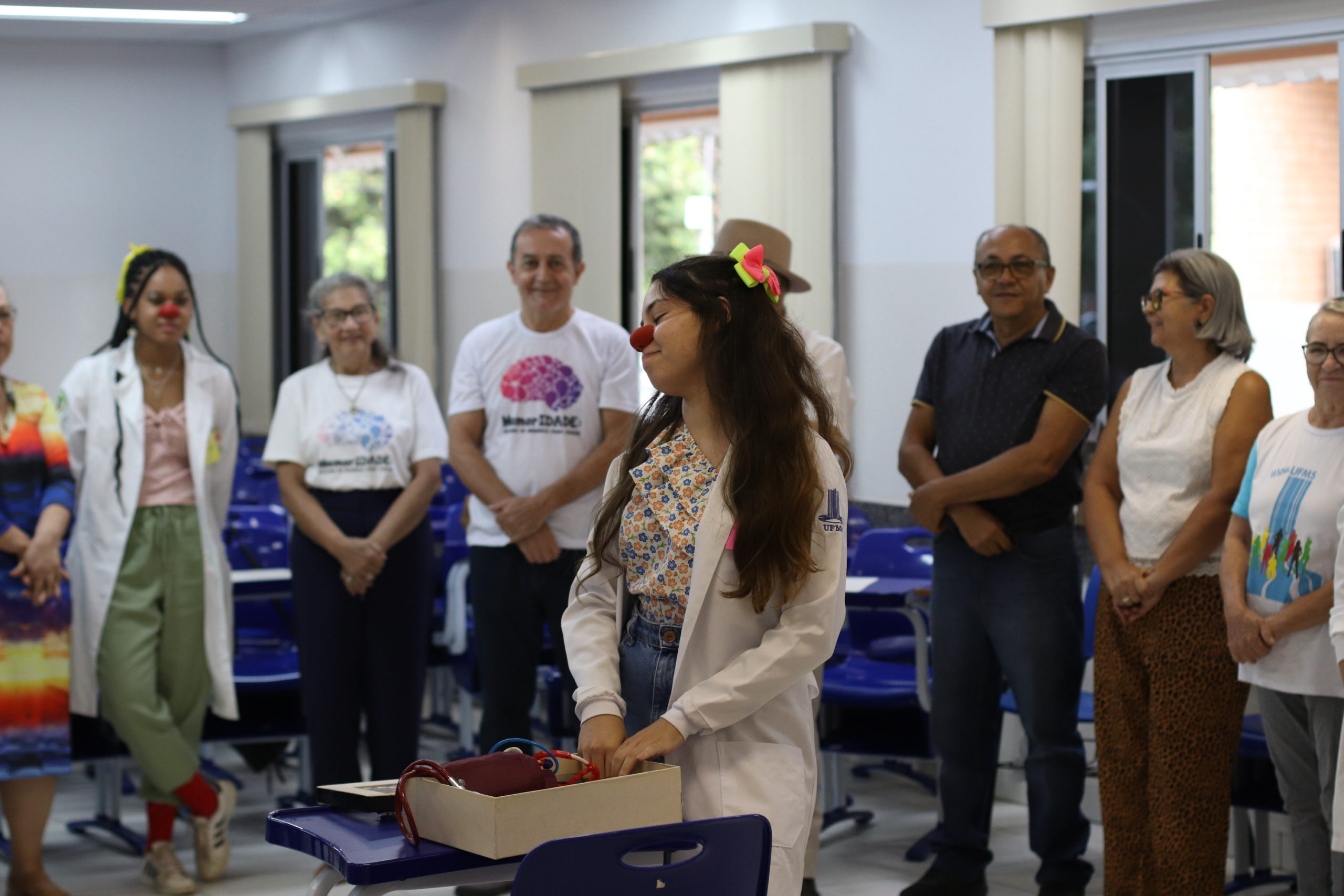 Os projetos de extensão Memoridade: oficina de memória para idosos e Rir é o melhor remédio, vinculados a Faculdade de Medicina (Famed), em parceria com o programa Universidade Aberta à Pessoa Idosa (Unapi), realizaram na tarde desta quinta-feira, 5, o evento de encerramento das atividades do ano. A programação do encontro teve como objetivo estimular a associação da memória com as emoções dos integrantes da Unapi e os estudantes.