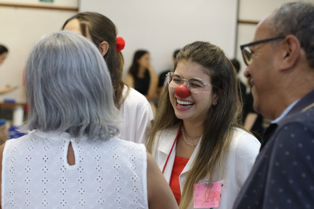 A estudante do segundo semestre do Curso de Medicina, participante da comissão do Memoridade e atual coordenadora acadêmica do Rir é o Melhor Remédio, Isabela Schmidt, contou que os projetos são uma oportunidade de trabalhar com idosos, conversar e trocar experiências com eles. “A gente trabalha a relação da memória com várias coisas, memória e sensorial, memória e música, e a gente quis trabalhar hoje a memória e a emoção. A gente lembrou do projeto Rir, que é justamente uma emoção, da alegria, e a gente pensou que seria a oportunidade perfeita para juntarmos esses dois grandes projetos aqui na Famed”, explicou a estudante sobre a integração das atividades dos dois projetos durante o evento.