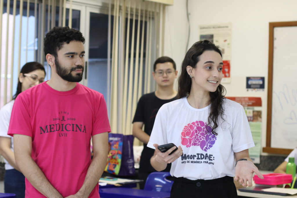 “Eu adoro o projeto Memoridade, eu participei no outro semestre como encontro intergeracional, e é incrível, porque os idosos têm muito o que ensinar pra gente, tem muito esse afeto e eles gostam muito de ver o seu potencial. É muito legal essa ligação que a gente faz com eles, eles são muito queridos. Eu gosto muito dessa parte de interação social, de você ter uma ligação com alguém e eu tenho certeza que falar com os idosos faz aumentar mais essa minha parte humana de ouvir a pessoa, de a gente lembrar que ela não é só uma doença. Ela tem os seus problemas, ela é uma pessoa como um todo, ela tem uma história, uma bagagem, é um ser humano complexo“, evidenciou a estudante do segundo semestre do Curso de Medicina e integrante do projeto Rir é o Melhor Remédio, Caroline Sena.