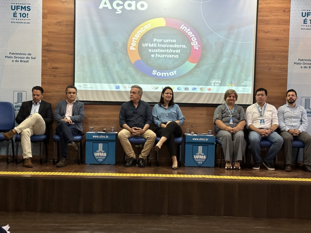 Nesta segunda-feira, 7, a reitora Camila Ítavo e o deputado federal Vander Loubet participaram de cerimônia para oficializar o investimento de R$ 3,5 milhões garantidos por meio de emenda parlamentar a projetos de pesquisa, extensão e inovação desenvolvidos por diversas unidades da UFMS.