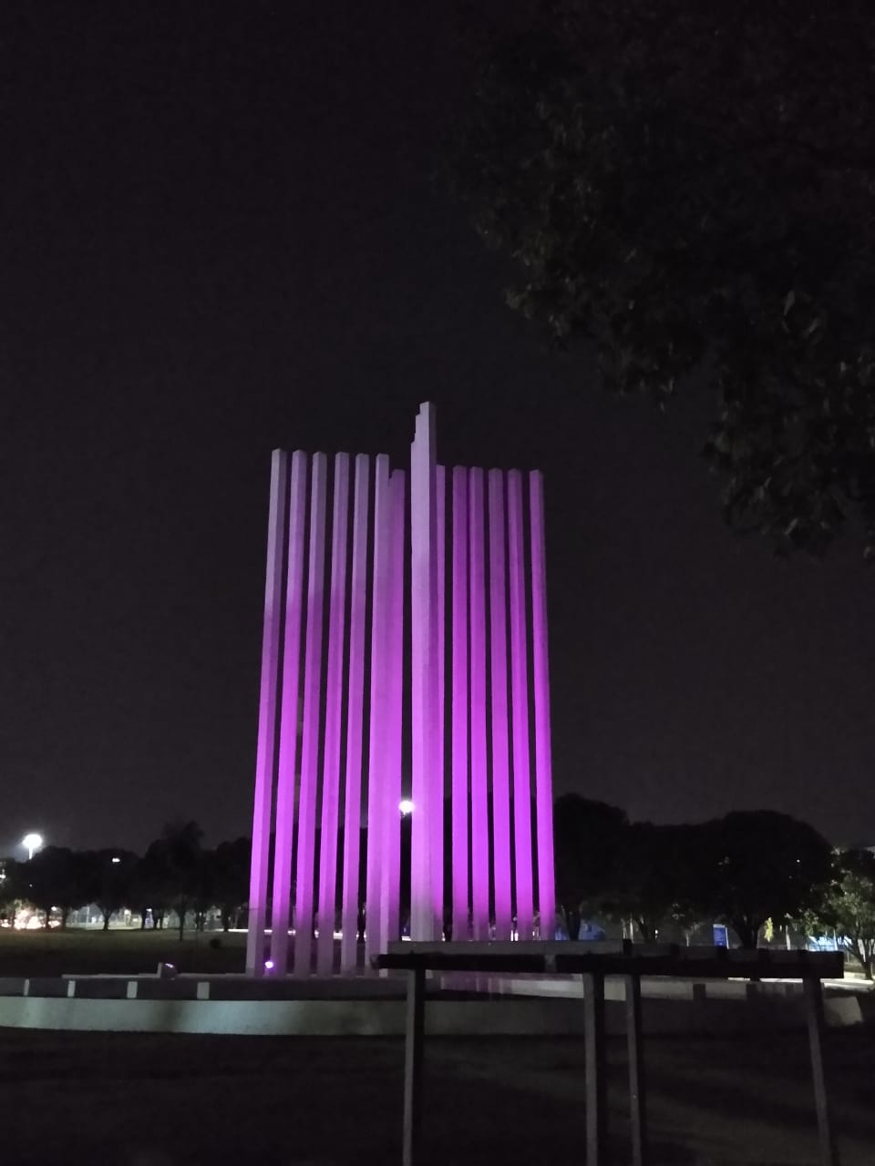 Portanto, o tema da campanha Eu Respeito deste mês é o conhecimento, mas a cor que sinaliza as artes gráficas e ilumina o Monumento Símbolo é rosa, em alusão a campanha internacional Outubro Rosa.