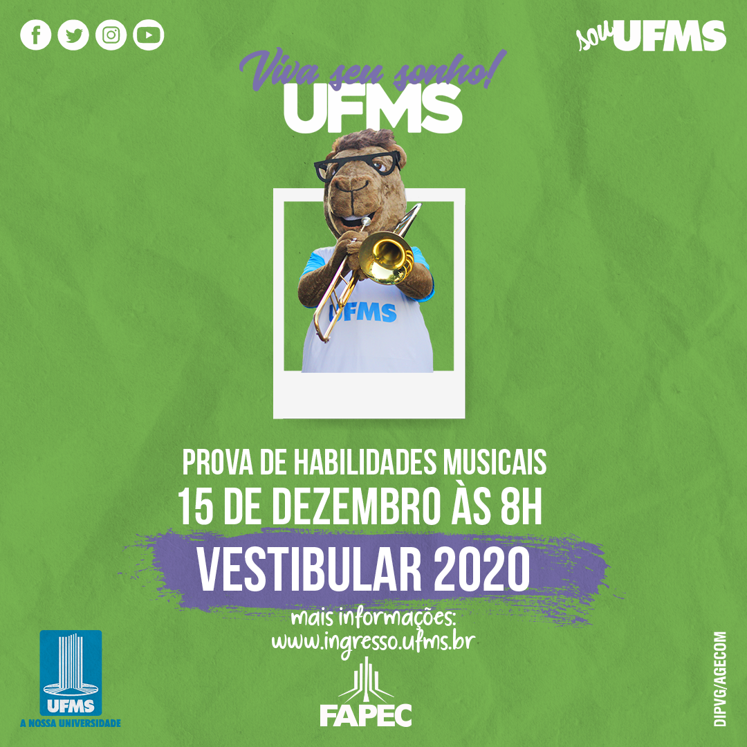 Os candidatos podem acessar o edital de Convocação para a Prova de Habilidades Musicais do Vestibular UFMS 2020 no endereço: www.ingresso.ufms.br.
