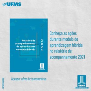 Além de uma nova versão do programa “Se Cuide Te Amo!”, a página ufms.br/coronavirus traz também o “Relatório de acompanhamento de ações durante o modelo híbrido 2021”. O documento apresenta os dados das diversas atividades realizadas no ano passado na Instituição, quando, a partir do segundo semestre, foi adotado o modelo de aprendizagem híbrida, que combina atividades presenciais e on-line por meio de atividades síncronas ou assíncronas.