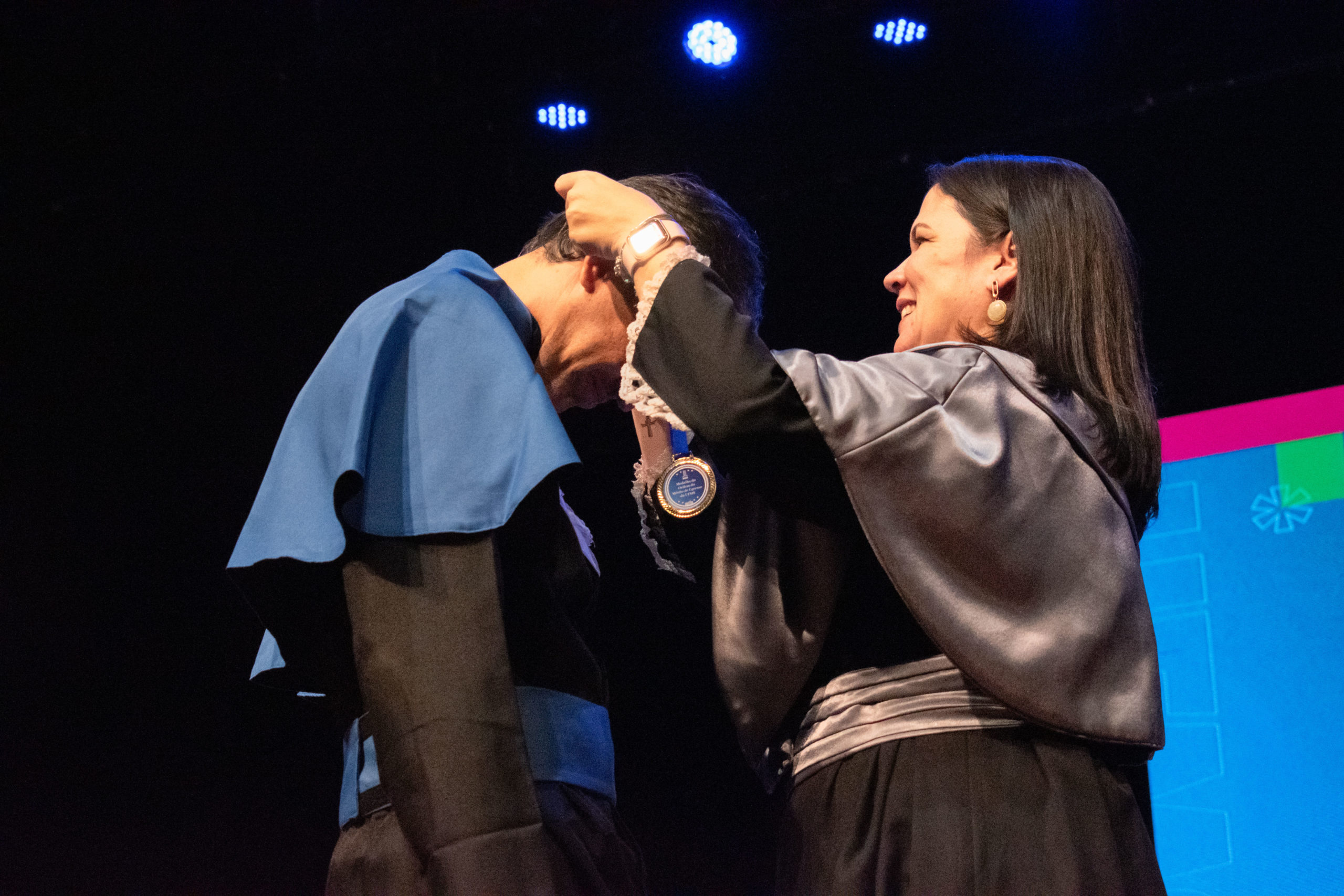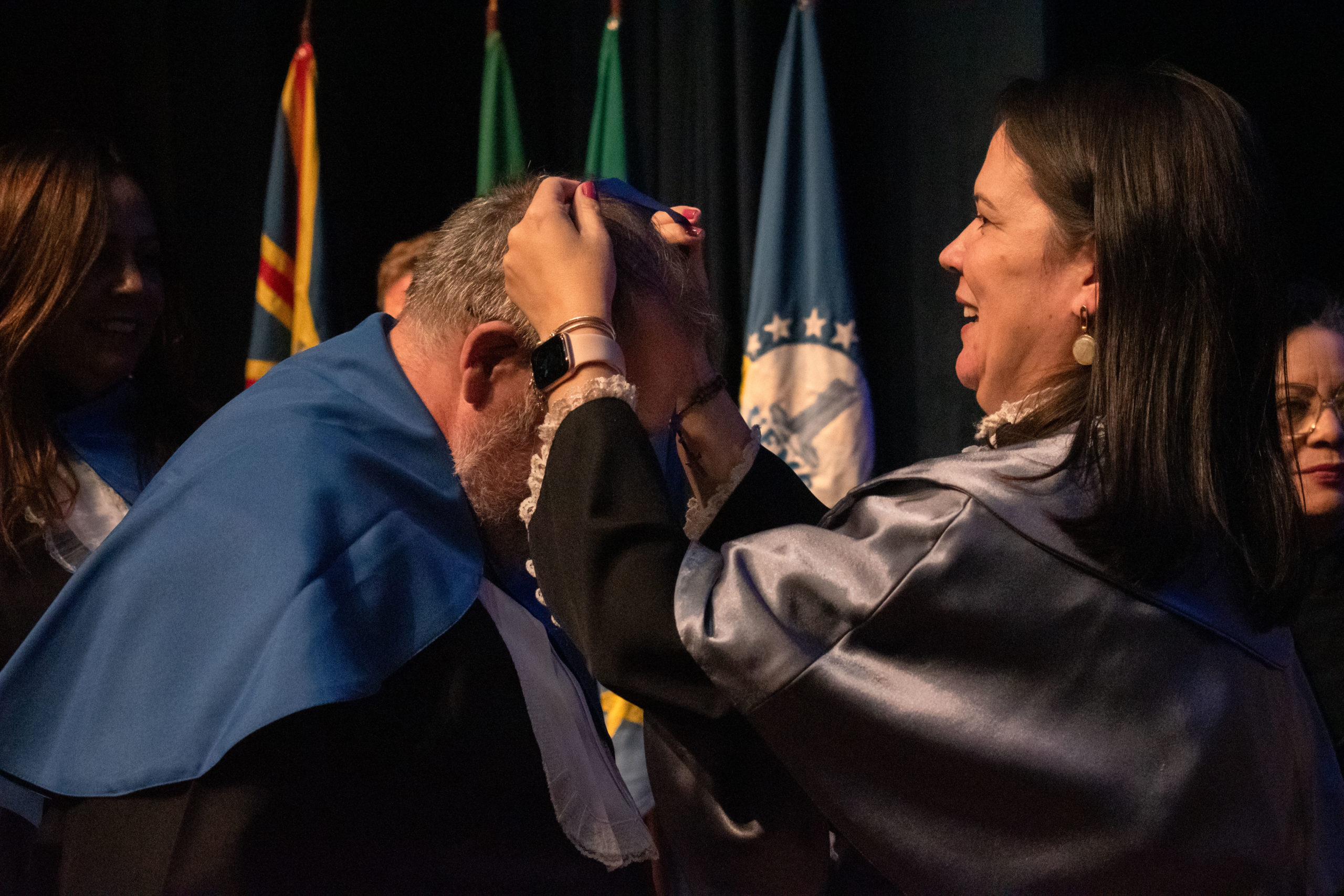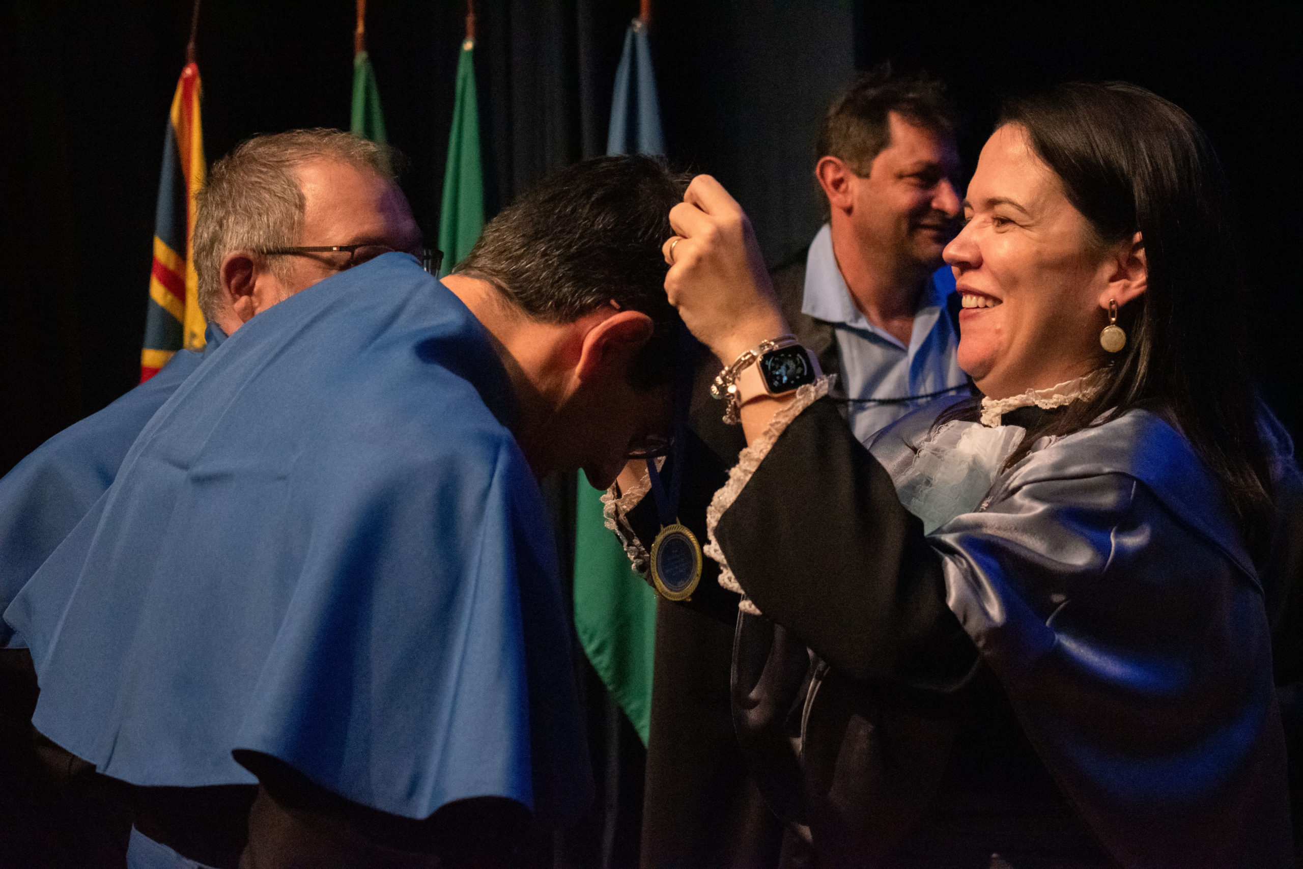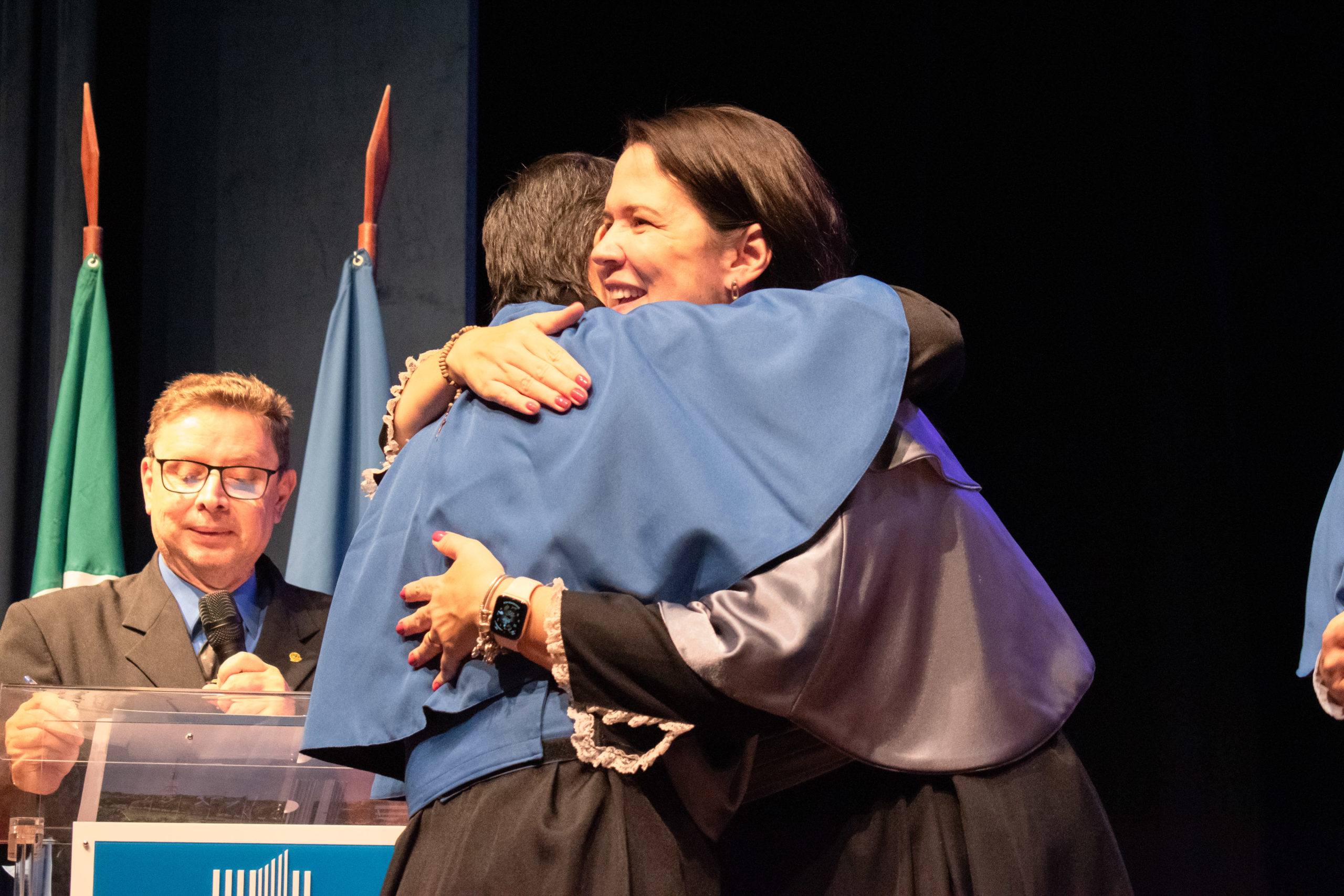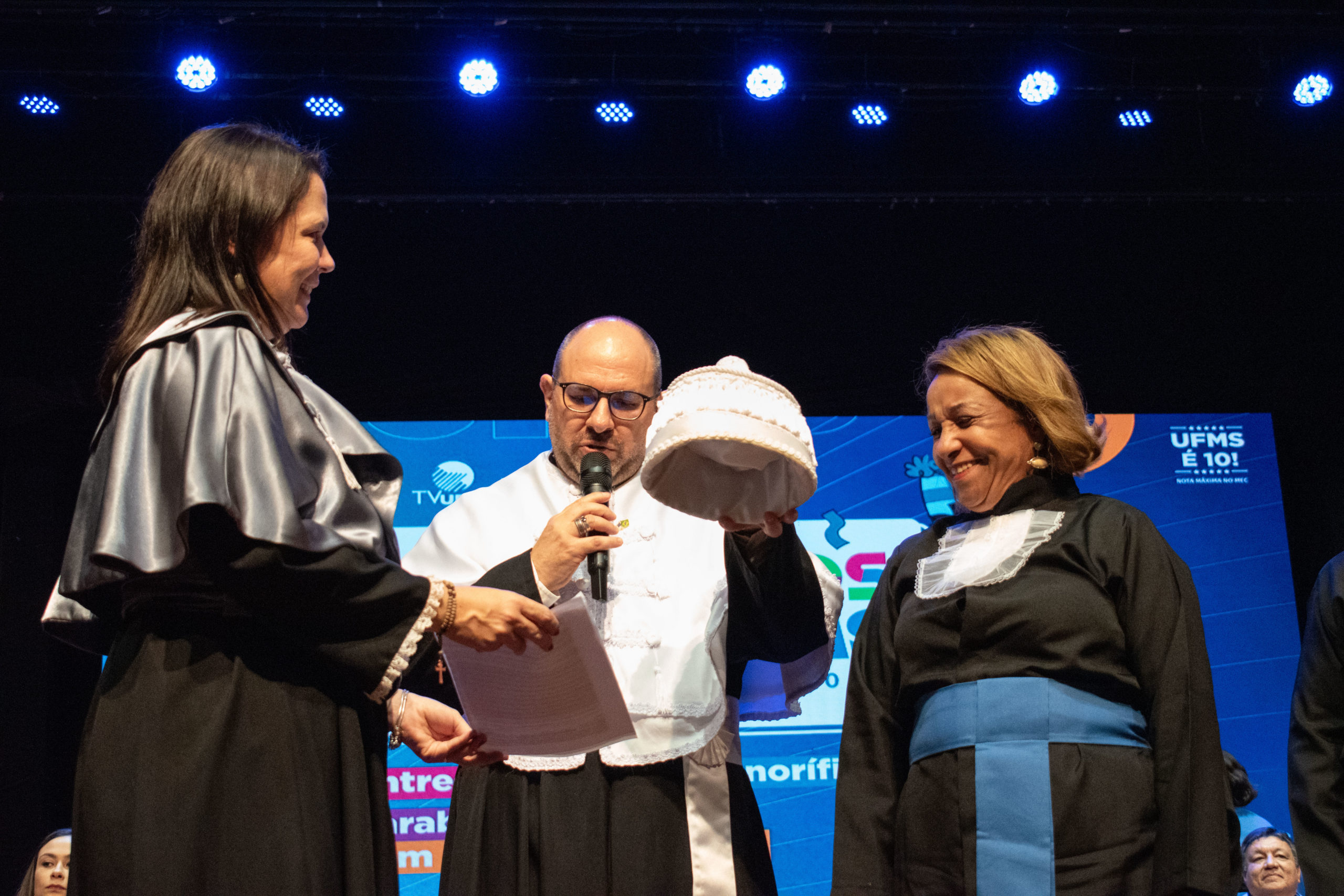 “É uma alegria, honra, satisfação, felicidade em ter esse momento de fala para homenagear nossos professores e técnicos. A entrega desses títulos só se tornou realidade a partir de 2021, apesar de estar em nosso estatuto há muito tempo. Essa iniciativa enobrece a nossa Instituição e contribui para que ela alcance mais sucesso, pois é por meio dos nossos servidores que a UFMS conseguiu nota 10 e se transforma cada vez mais em uma Instituição maior em números e qualidade”, disse a pró-reitora de Gestão de Pessoas e presidente da Comissão de Análise dos Títulos Honoríficos, Gislene Walter da Silva.