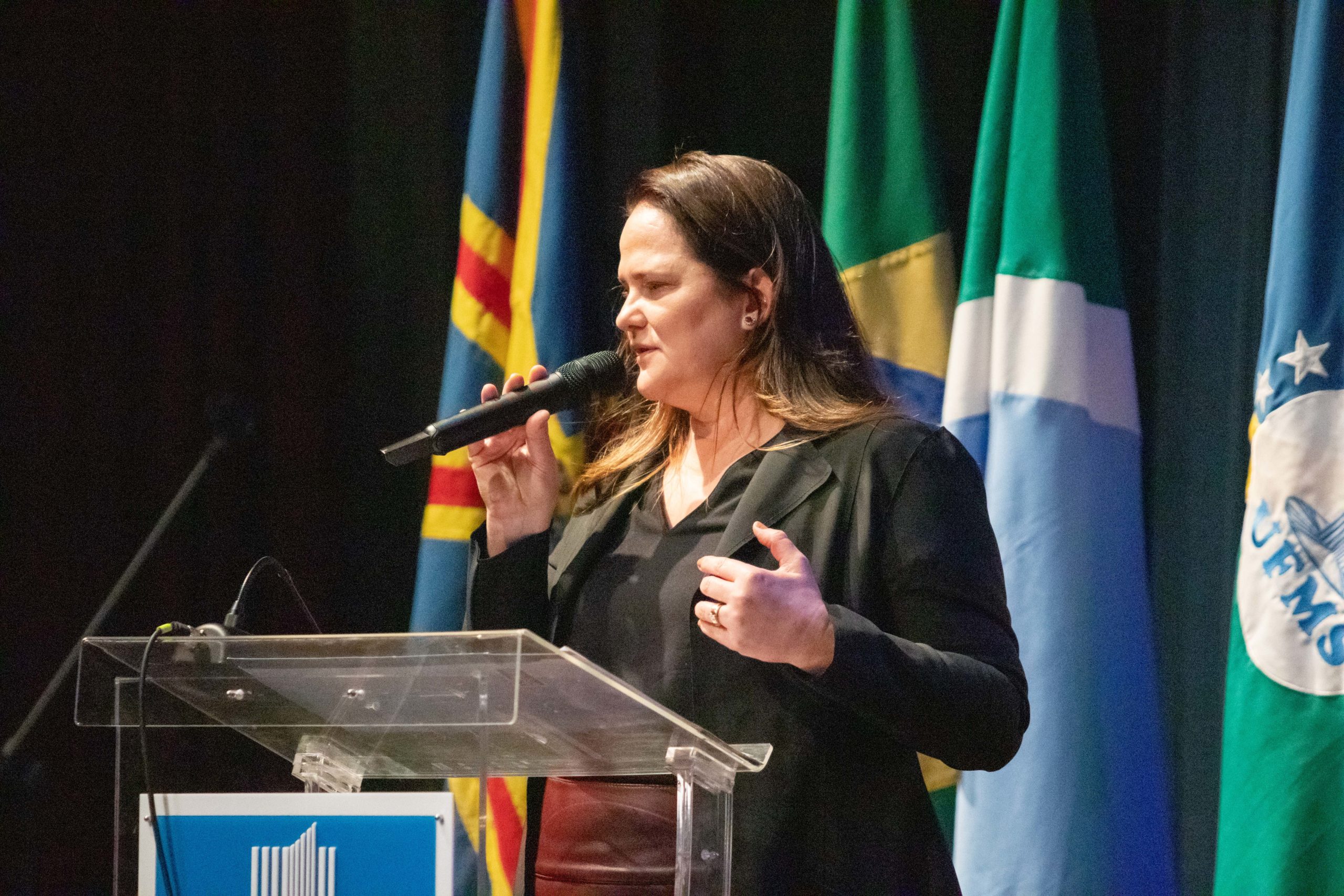 A professora da Universidade de Brasília e líder do Laboratório de Inteligência Pública, Magda de Lima Lúcio, representou os parceiros da UFMS no Brasil e agradeceu pela colaboração com universidades como a UFMS. “A partir das construções acadêmicas tivemos a oportunidade de criar modelos e o maior grupo de pesquisa de transferência de instrumentos de gestão e modelos de governança para o país. […] Estamos iniciando uma parceria com o Instituto Nacional de Pesquisas Espaciais e vamos atuar no projeto que levará o homem à Marte. Nada disso seria possível se você não trouxesse para a comunidade universitária o debate do empreendedorismo, da inovação e a materialização do marco de ciência, tecnologia e inovação”.