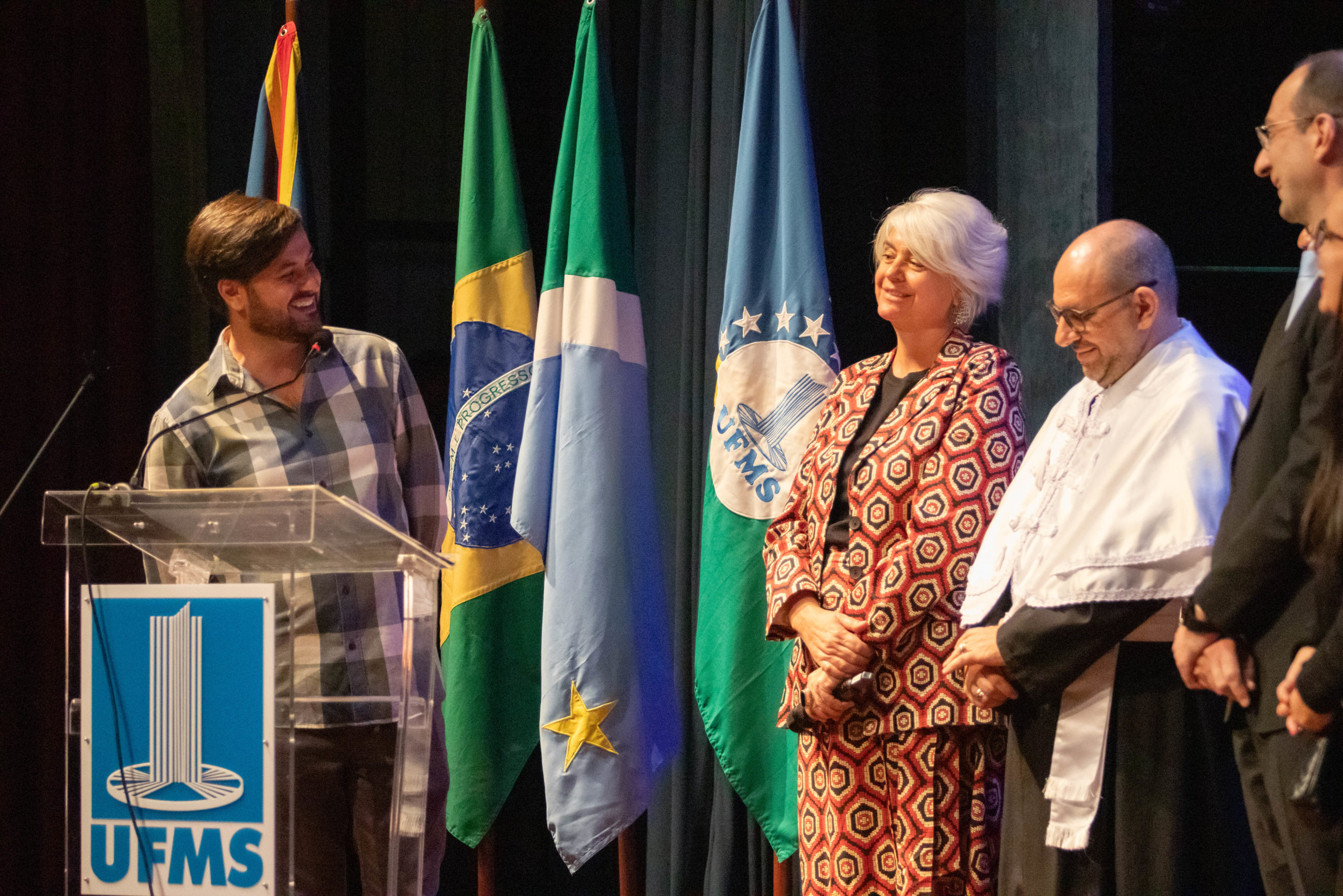 O pró-reitor de Assuntos Estudantis e presidente da Comissão de Análise da Ordem do Mérito de Egresso, Albert Schiaveto, fez a homenagem aos profissionais formados pela UFMS. “Temos 62 anos, 45 anos de Federal e nesse período temos mais de 70 mil egressos. Penso no impacto que eles tiveram em nossa sociedade. Quero usar uma palavra para homenagear nossos egressos: reconhecimento. A palavra reconhecimento nos faz acreditar que todos os nossos esforços valeram a pena. Também queria fazer uma outra reflexão, pois a UFMS ao reconhecer o papel dos egressos em nossa sociedade, ela também é reconhecida. Reconhecemos e acreditamos que fizemos todos os nossos esforços ao formar nossos estudantes e torná-los profissionais. E eles valeram a pena! ”, destacou.