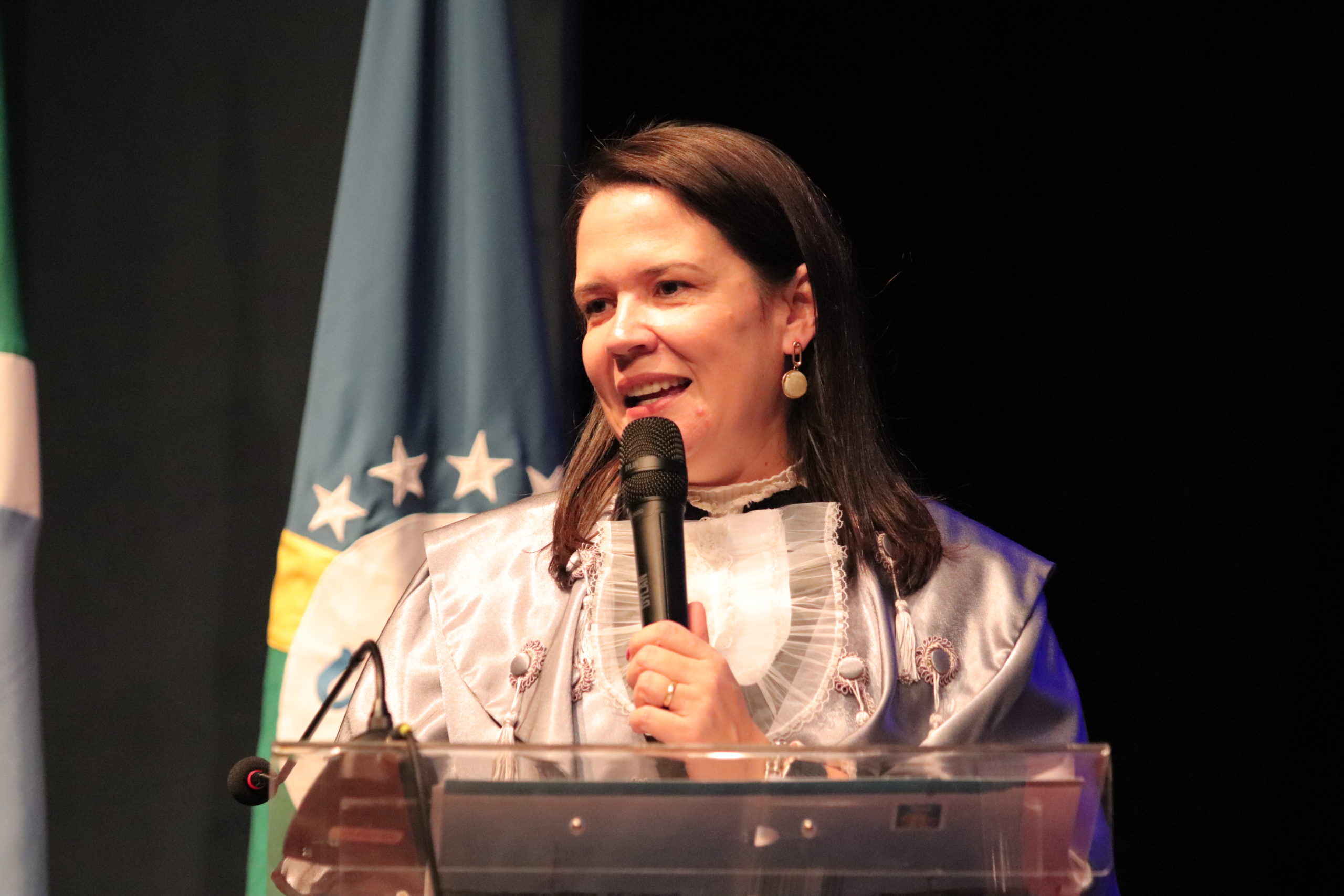 A diretora do Foro da Comarca de Campo Grande, Joseliza Alessandra Vanzela Turine, representou o presidente do Tribunal de Justiça de Mato Grosso do Sul, o desembargador Sérgio Fernandes Martins, e parabenizou a todos que construíram e constroem a história a maior e melhor Universidade do Estado. “É um prazer estar aqui em um momento tão especial. Parabenizo a todos os homenageados, tenho certeza que tiveram um papel muito importante na Universidade e na sociedade. Cumprimentar a nossa aniversariante, a UFMS. Dizer que de uma certa forma ela fez parte da minha vida. Fiz doutorado e pós-doutorado aqui e isso foi fundamental para minha carreira. Quero agradecer muito a parceria da UFMS com o Tribunal”, enfatizou.