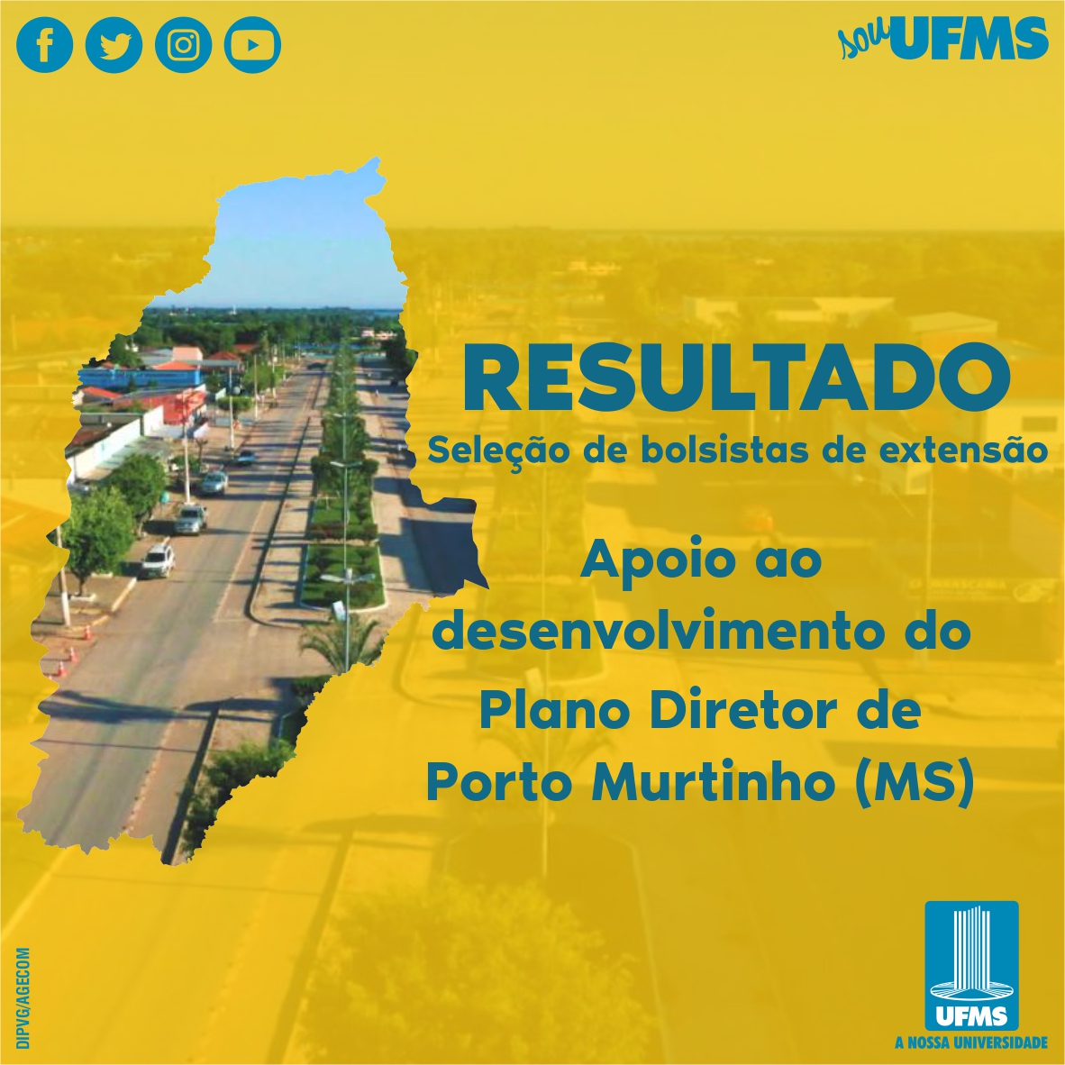 Saiu o resultado do processo seletivo de bolsistas de extensão para atuar no Projeto Apoio ao desenvolvimento do Plano Diretor da Cidade de Porto Murtinho-MS.