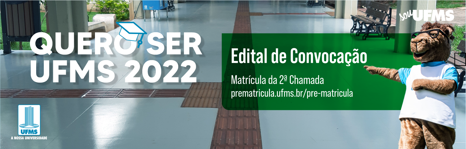 Os candidatos aprovados no processo seletivo Quero Ser UFMS 2022 foram convocados em segunda chamada para a matrícula. O prazo termina no próximo dia 17 de abril. Segundo a Pró-Reitoria de Graduação, os candidatos  que não efetuarem  a matrícula no prazo previsto perderão o direito à vaga.