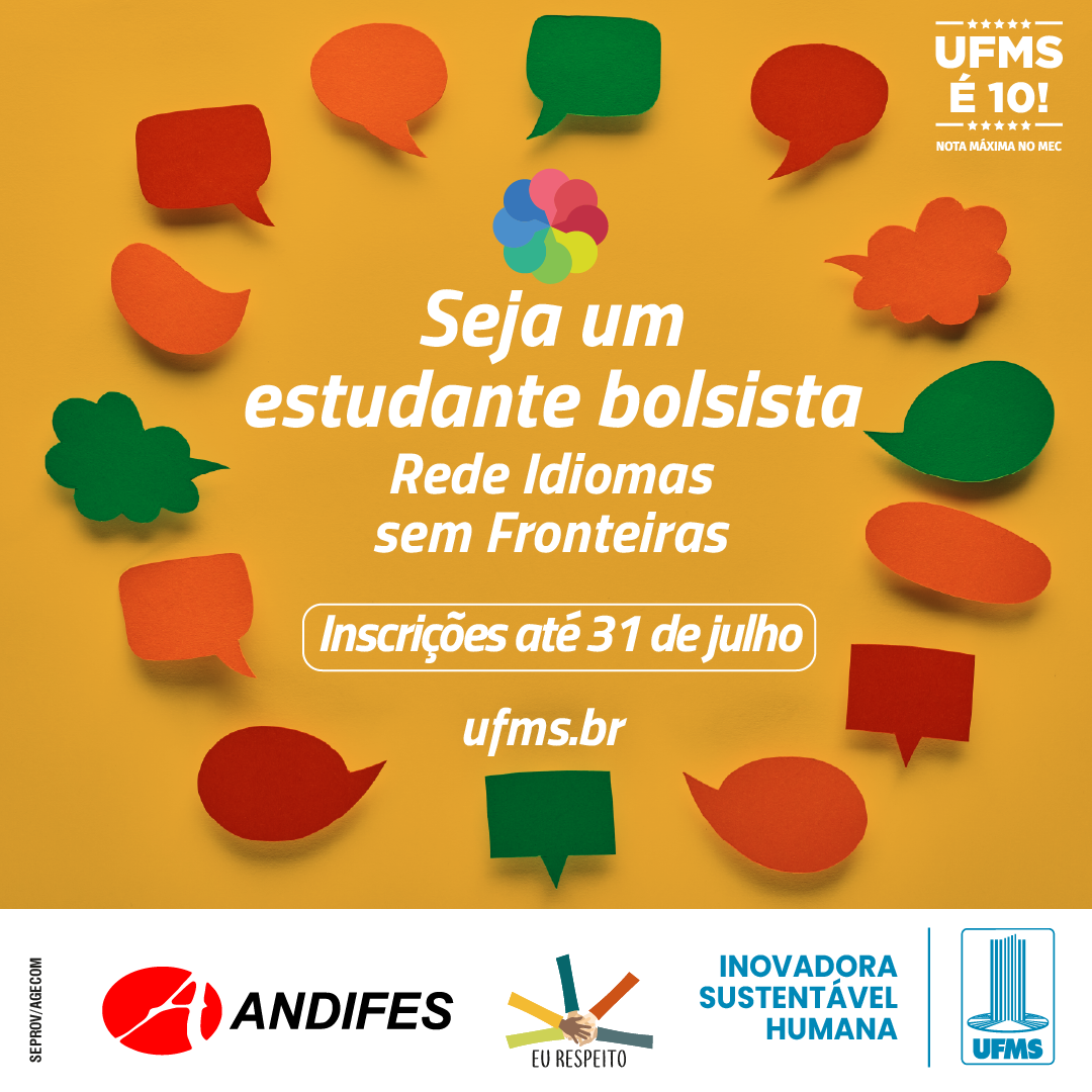 A Rede Idiomas sem Fronteiras (Rede IsF), ligada à Associação Nacional dos Dirigentes das Instituições Federais de Ensino Superior, oferta bolsas para estudantes de graduação e pós-graduação com atuação nos idiomas inglês, espanhol e português. As inscrições devem ser feitas por meio doSistema de Informação e Gestão de Projetos (Sigproj) até 31 de julho.