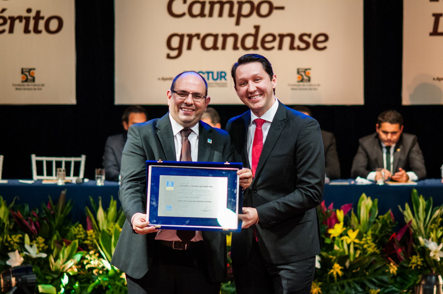 Entre os homenageados da noite, o Reitor da Universidade Federal de Mato Grosso do Sul, professor Marcelo Turine, recebeu o título de Cidadão Campo-Grandense em reconhecimentos aos relevantes serviços prestados à sociedade campo-grandense, colaborando com o desenvolvimento da cidade. A honraria foi entregue pelo vereador Junior Longo.