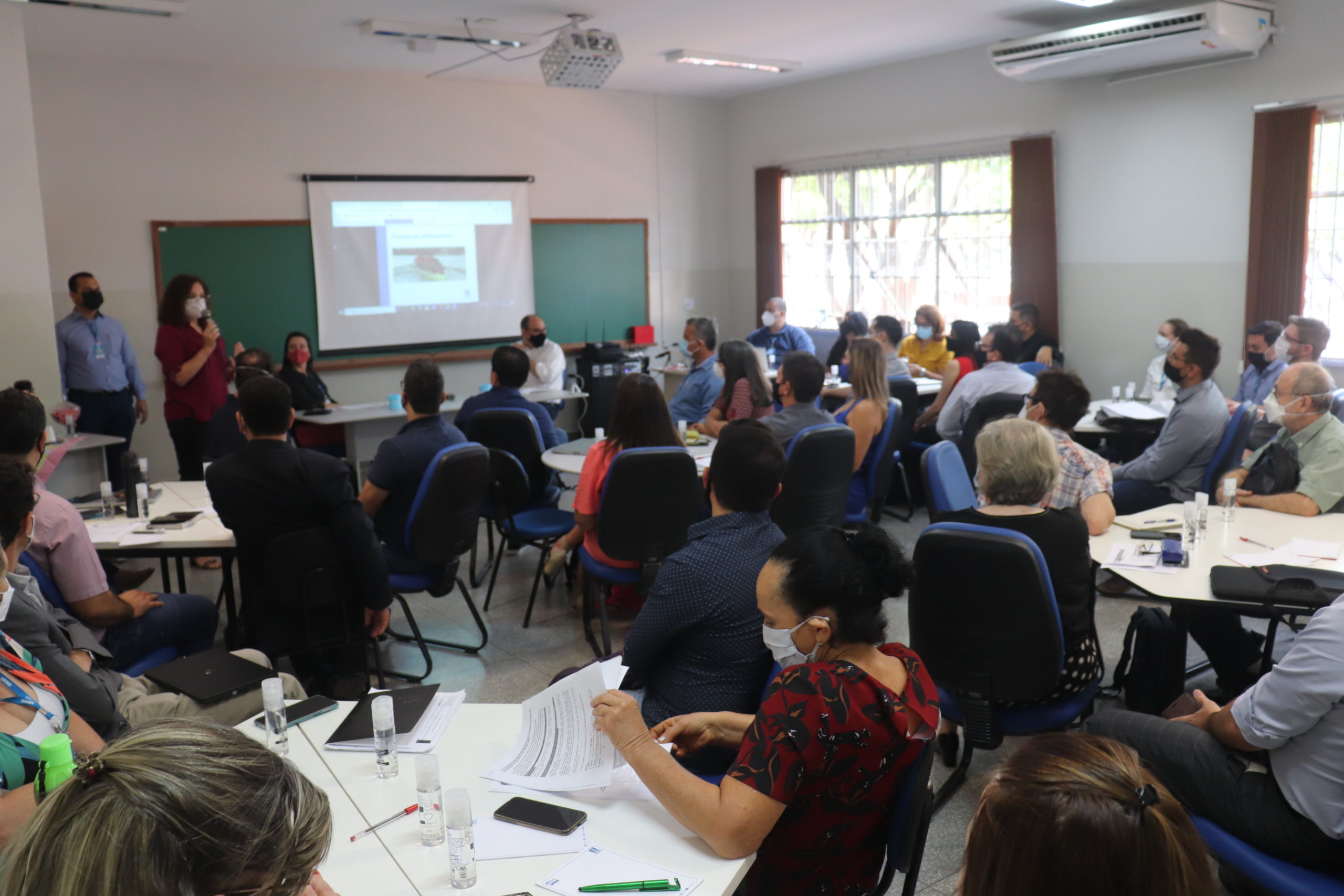 O reitor Marcelo Turine e a vice-reitora Camila Ítavo reuniram-se pela primeira vez presencialmente com representantes da administração central e setorial para discutir sobre gestão. Participaram pró-reitores e diretores de unidades da Cidade Universitária e dos câmpus.