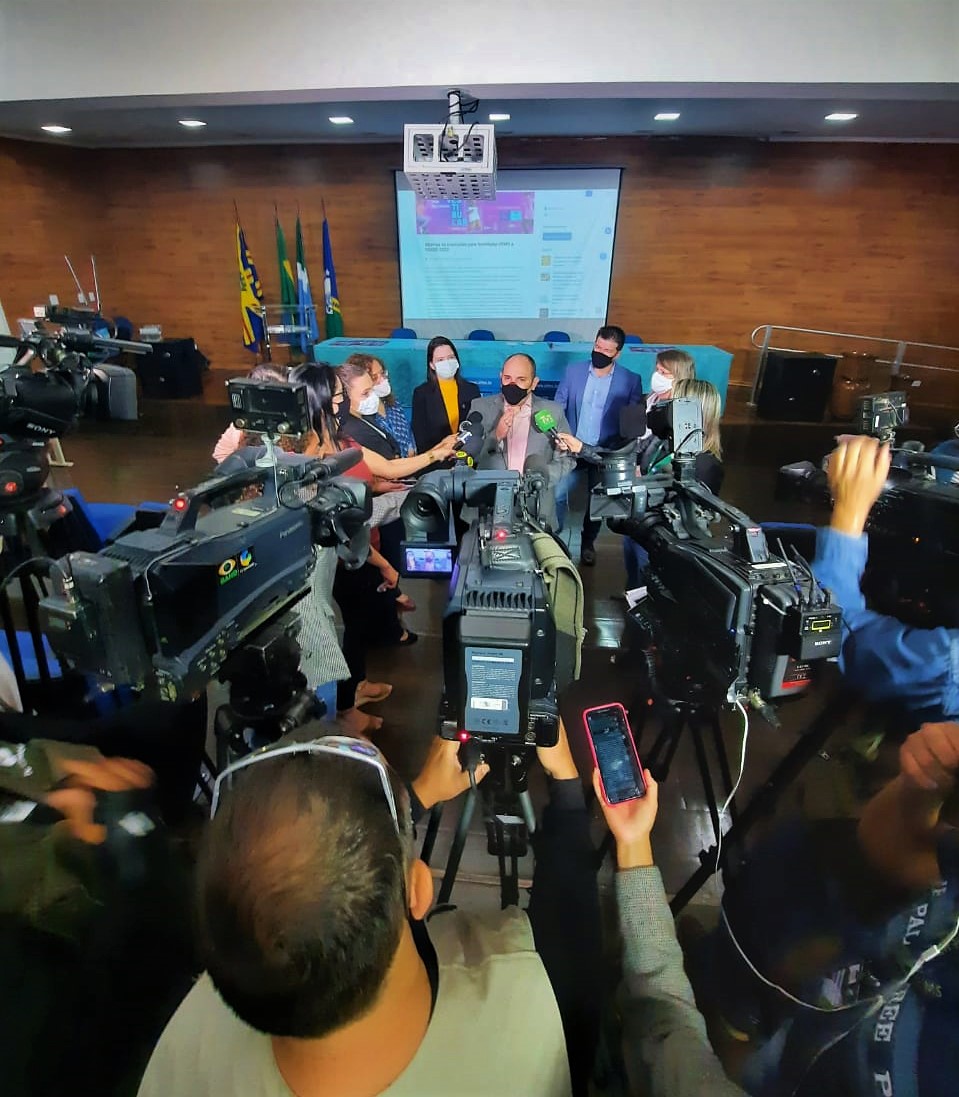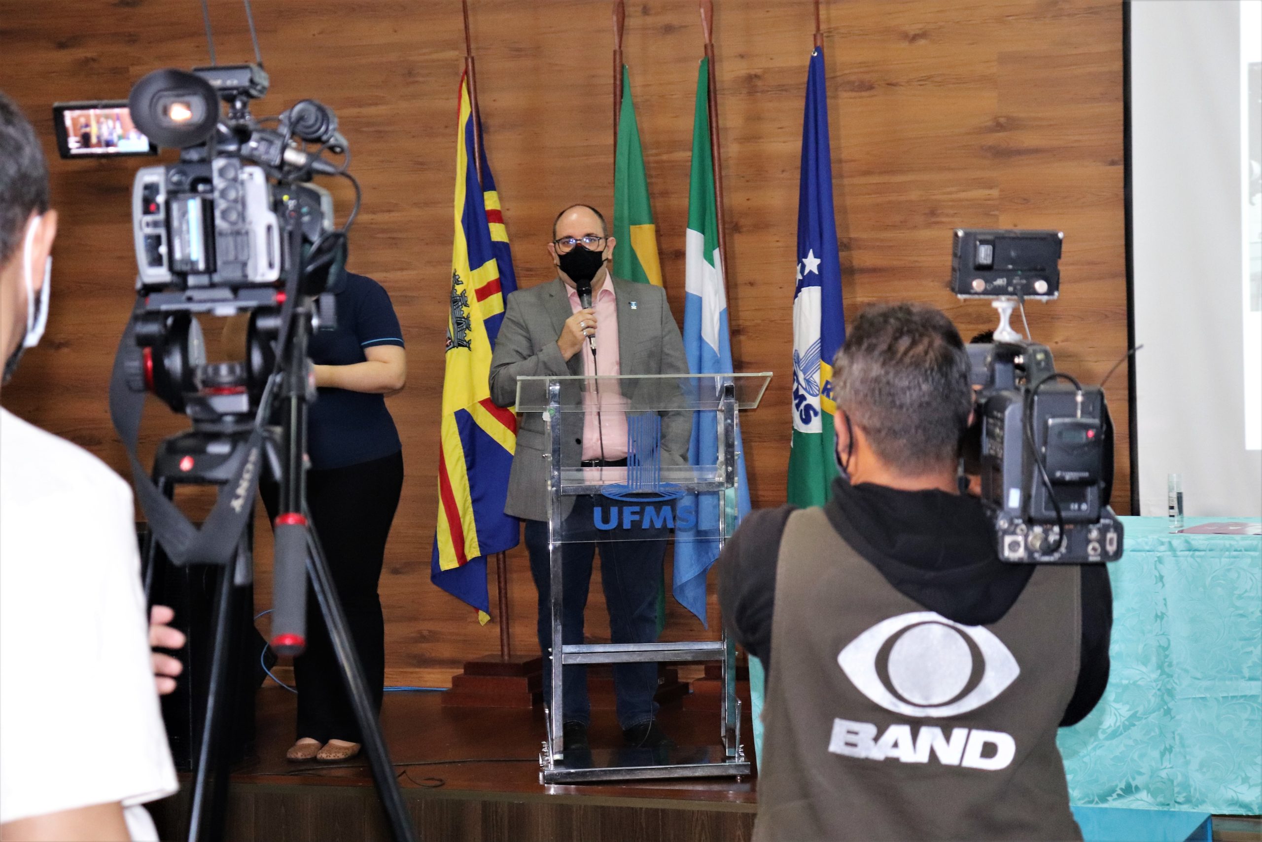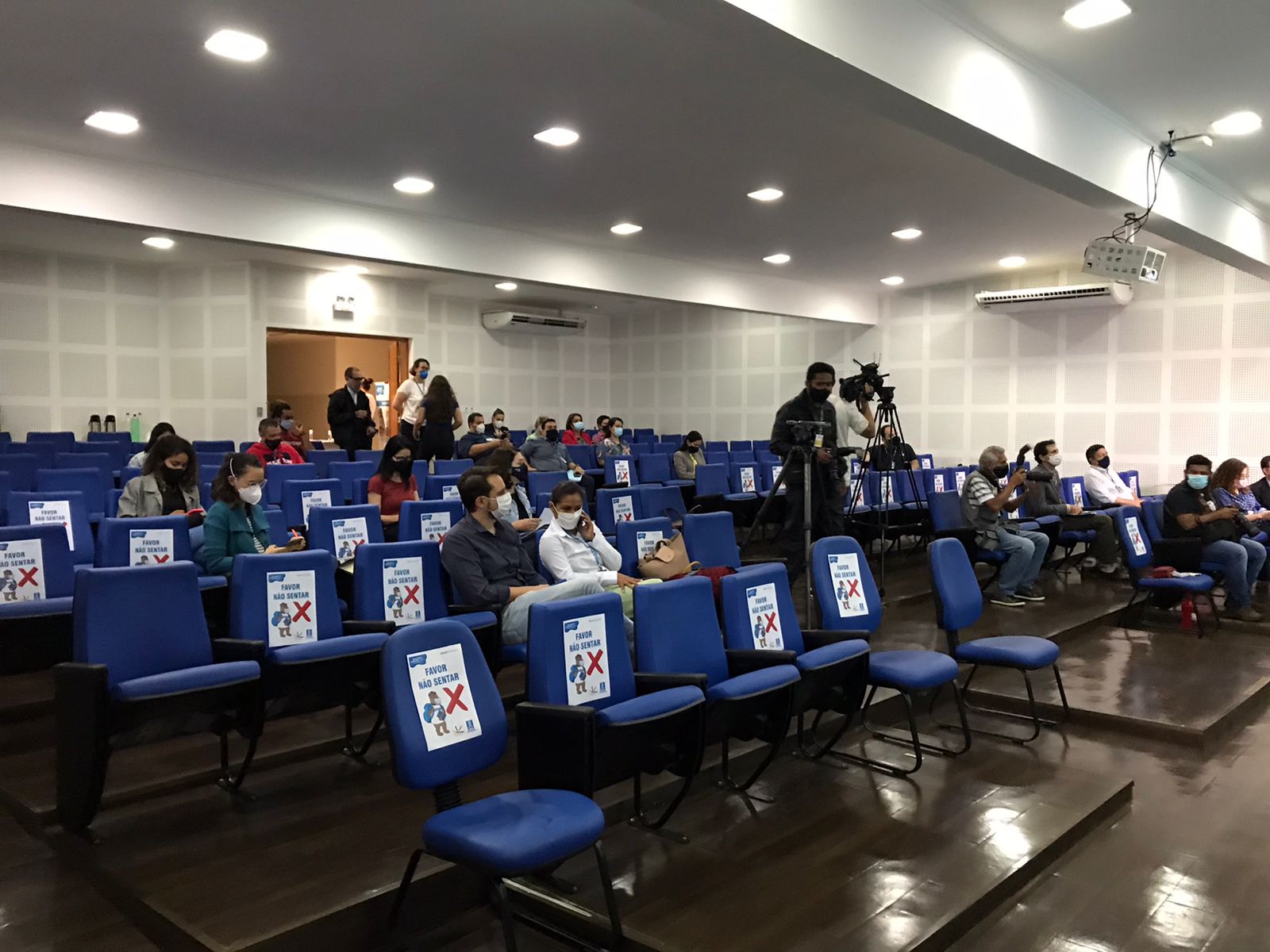 A coletiva foi organizada pela Agência de Comunicação Social e Científica (Agecom) no auditório do Complexo Ead e Escola de Extensão e contou com tradução simultânea em Libras. Também foram observadas as medidas de biossegurança, como uso de máscaras, álcool gel e aferição de temperatura na entrada.