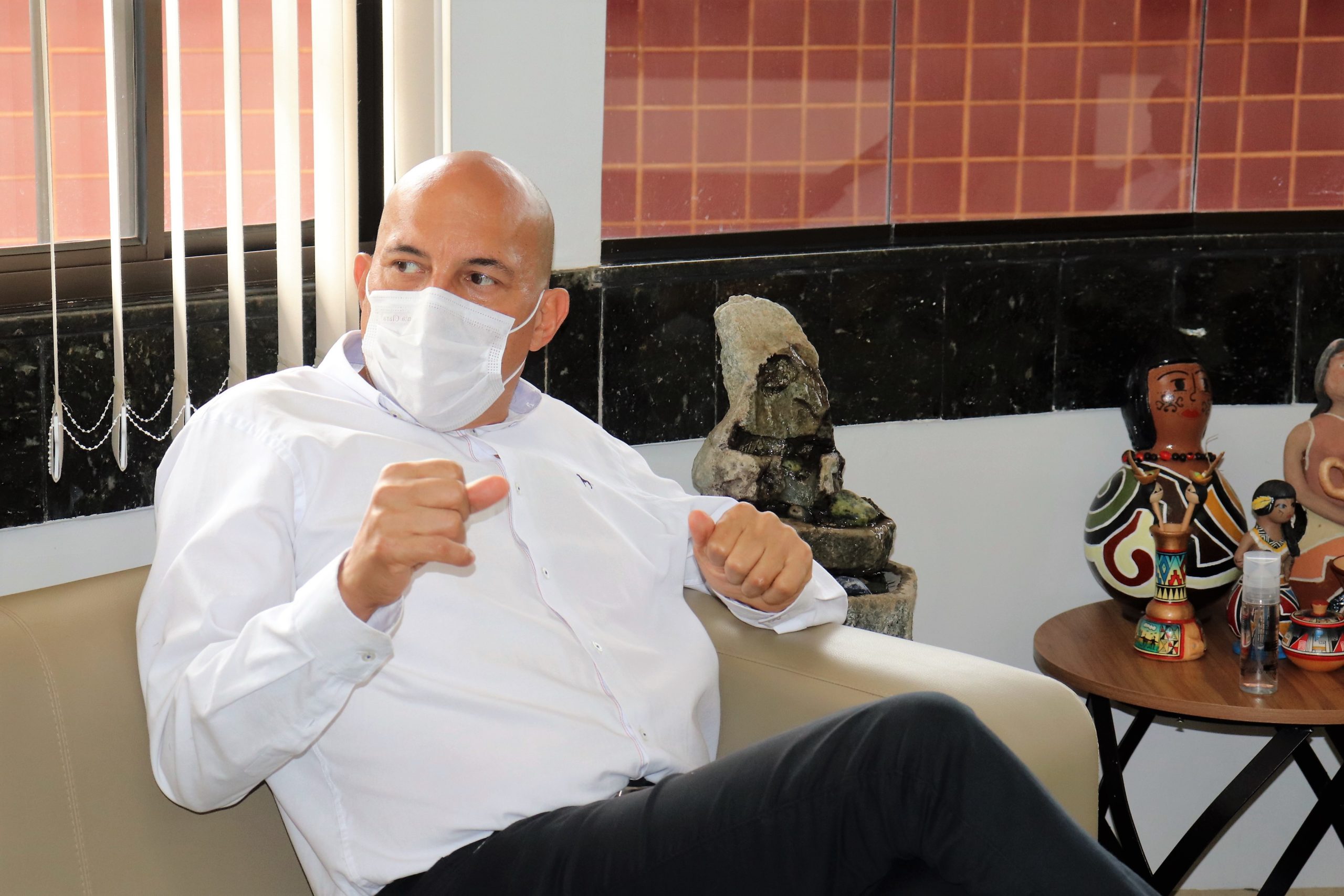 Nesta terça-feira, 19, o reitor Marcelo Turine se reuniu com o presidente da Comissão de Assuntos de Defesa e Estudos Estratégicos (Cadee) da Ordem dos Advogados do Brasil de Mato Grosso do Sul (OAB MS) Marco Antonio Barbosa. A reunião contou também com a participação do diretor da Agência de Internacionalização e Inovação Saulo Gomes e foi realizada no gabinete da Reitoria.