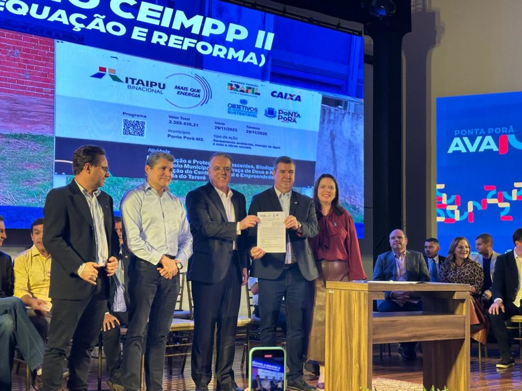 Na última sexta-feira, 23, a reitora Camila Ítavo assinou termo de cooperação com a Prefeitura de Ponta Porã e o Governo do Estado para o desenvolvimento de ações voltadas para a educação, ciência, inovação, saúde e desenvolvimento sustentável, humano e tecnológico da região fronteiriça. A assinatura foi realizada no Centro Internacional de Convenções, durante o lançamento do programa Ponta Porã Avança!, com investimentos de mais de R$ 300 milhões no município, dos governos estadual e federal e de emendas parlamentares de deputados e senadores.