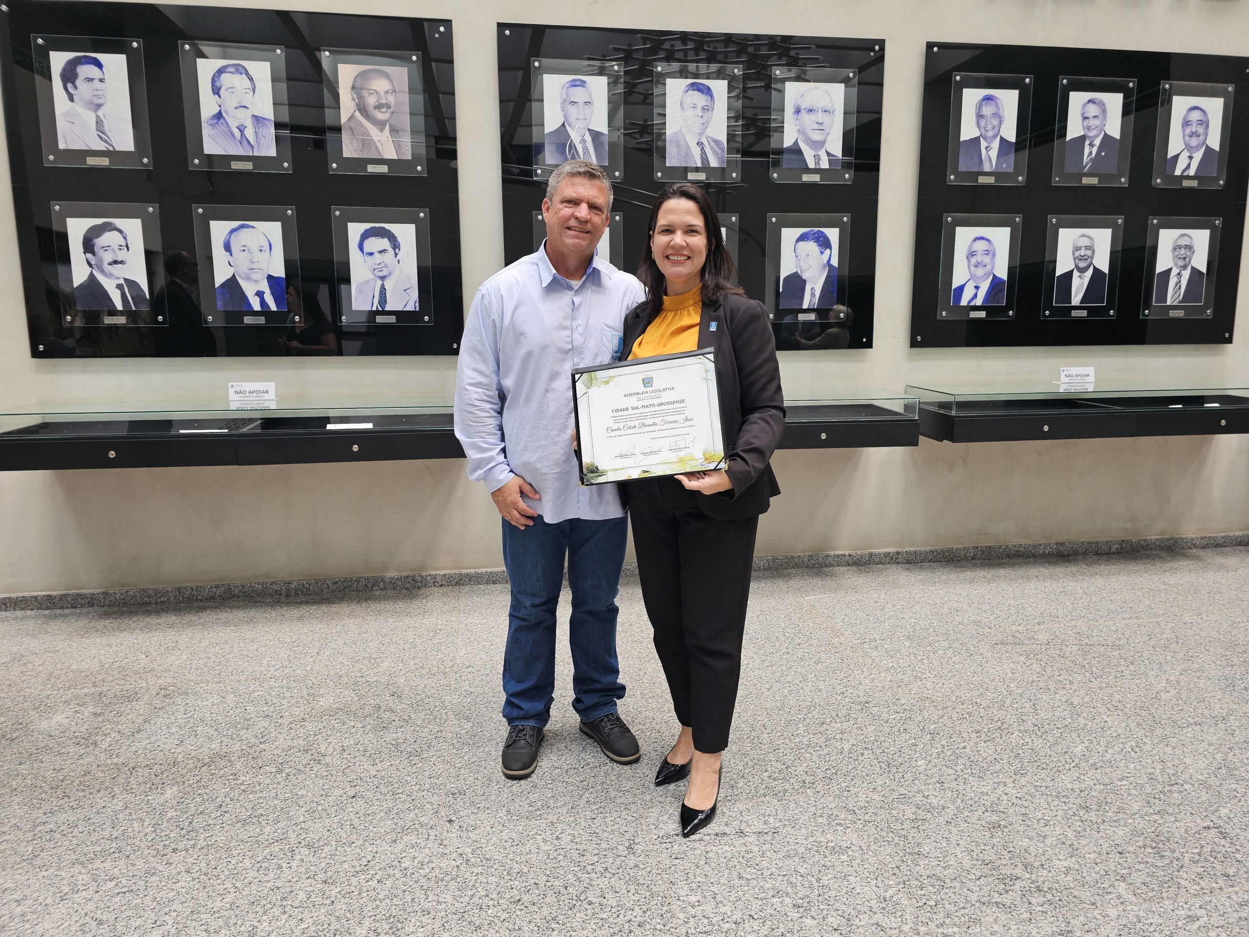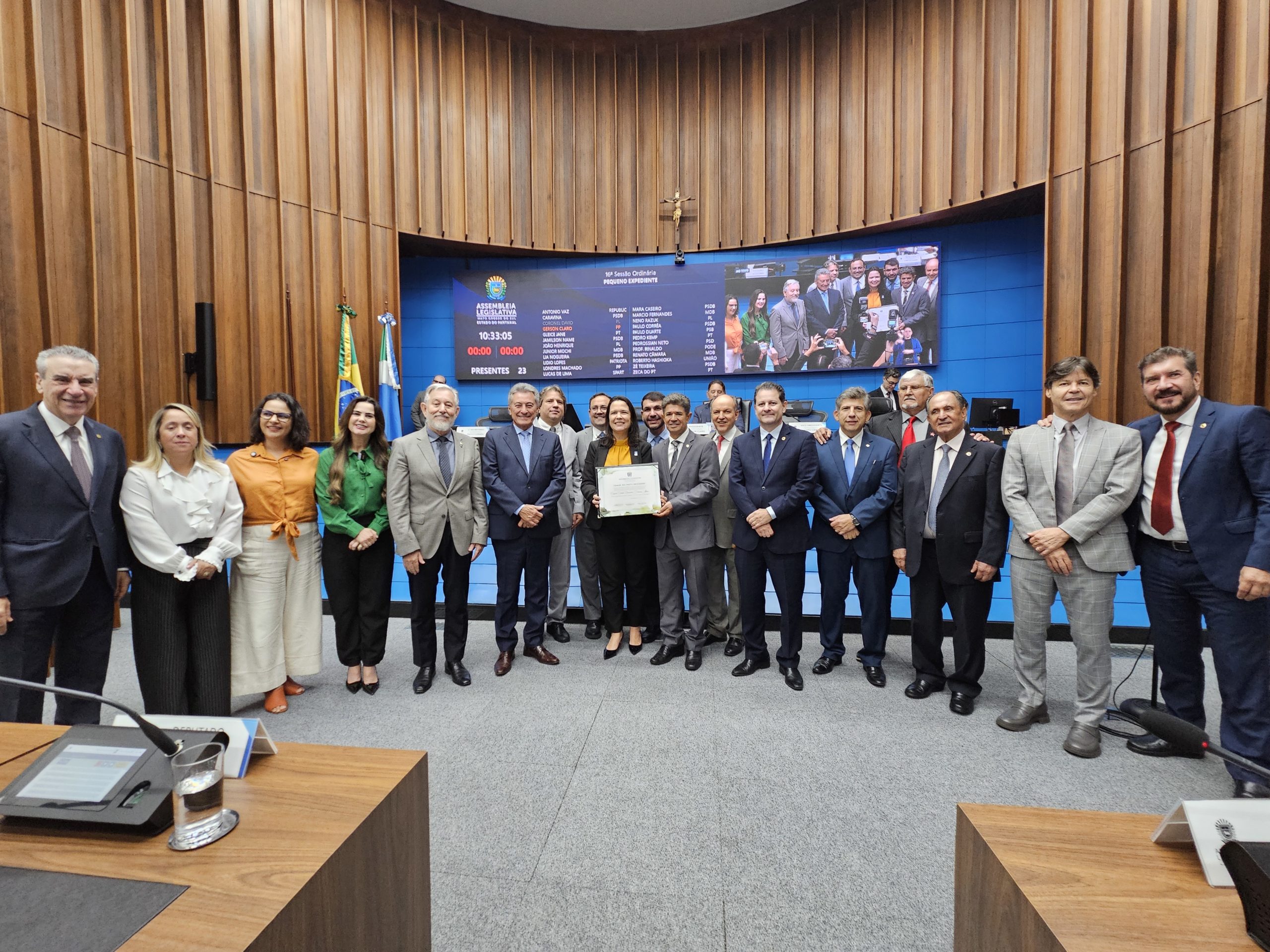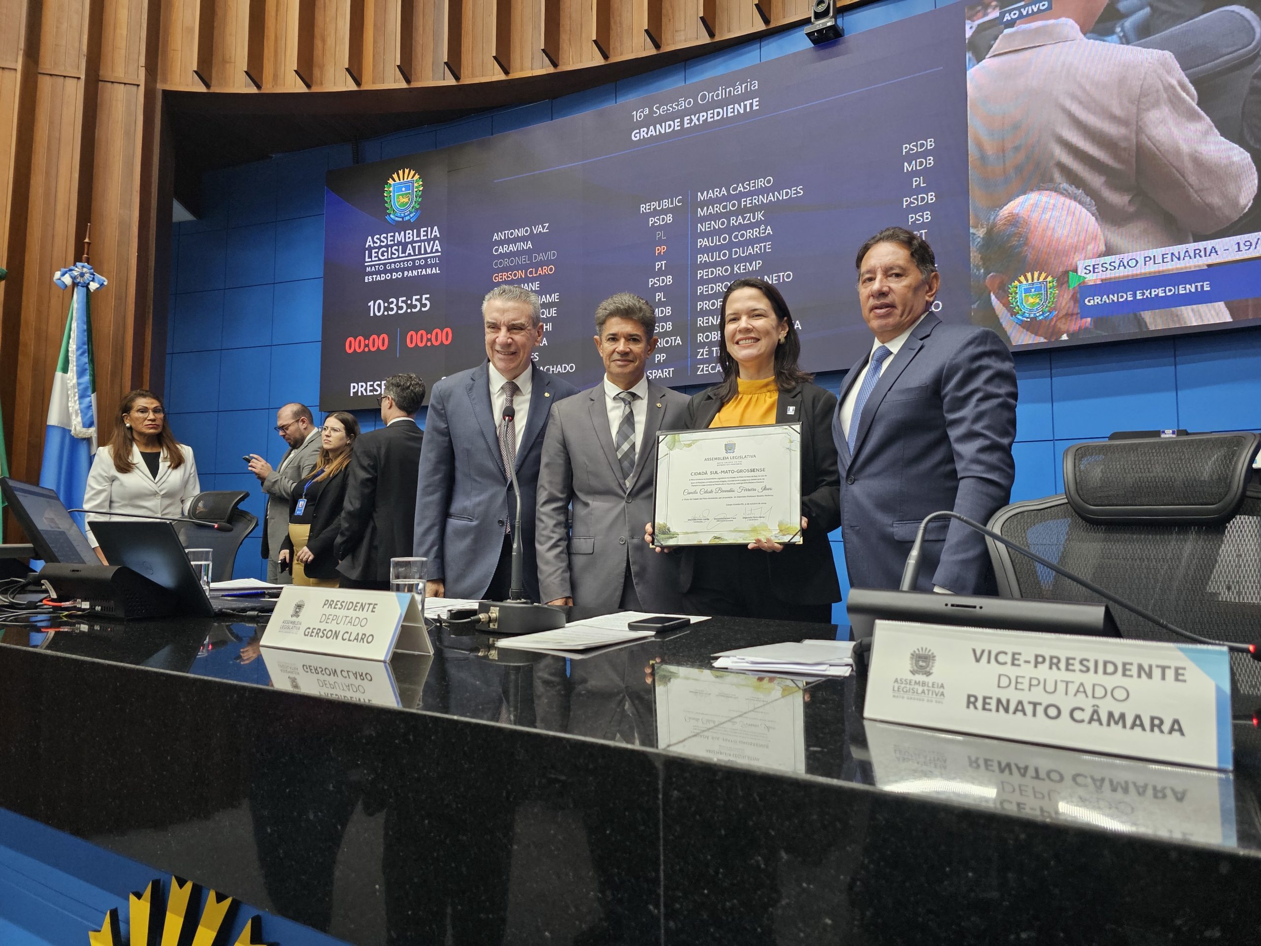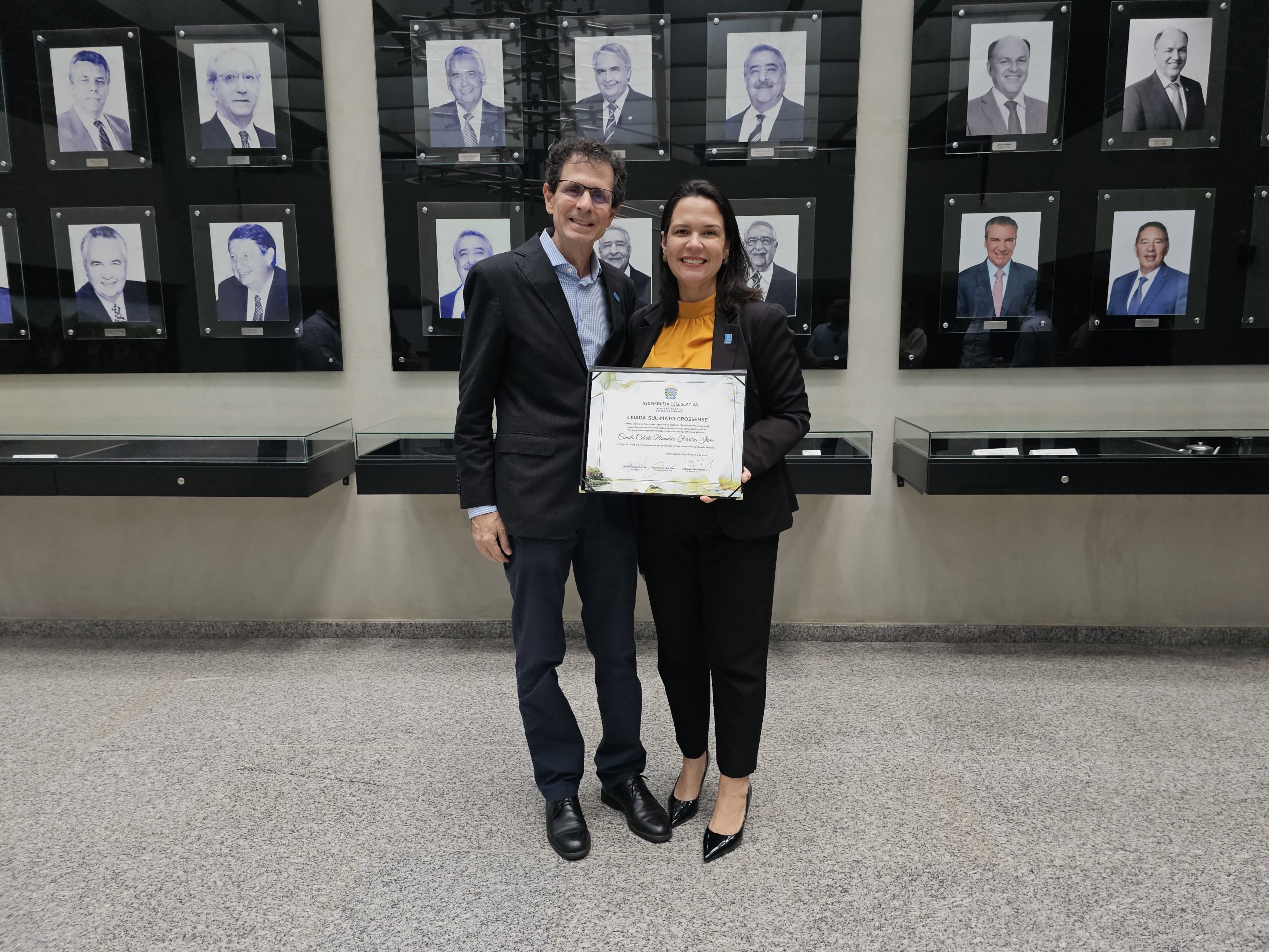 A reitora Camila Ítavo recebeu o título de cidadã sul-mato-grossense concedido pela Assembleia Legislativa de Mato Grosso do Sul (Alems) na manhã desta quarta-feira, 19. A homenagem foi proposta pelo deputado estadual e presidente da Comissão de Educação, Rinaldo Modesto, pela contribuição para a educação superior no Estado.
