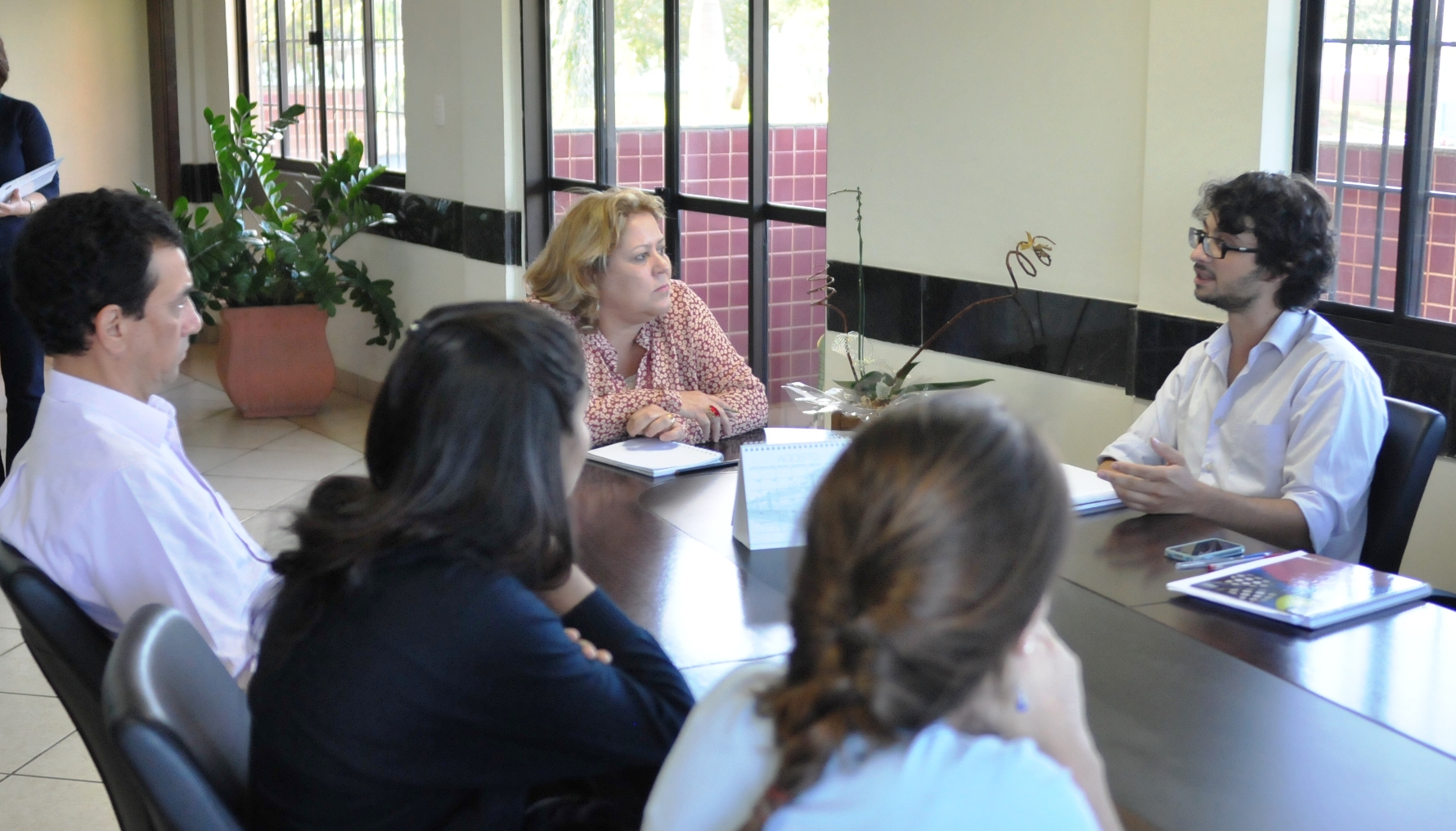 Henrique Nascimento da Silva, Larissa Christina Gomes dos Santos, Mayara Magalhães Morello, Sérgio Montier Onça e Thays Romeiro de Oliveira conversaram com a Reitora, professora Celia Maria Silva Correa Oliveira, o Pró-Reitor de Extensão, Cultura e Assuntos Estudantis, professor Valdir Souza Ferreira, e a Coordenadora de Assuntos Estudantis, Waneide Ferreira dos Santos. Foram discutidas, entre outros assuntos, questões relacionadas ao repasse do Programa Nacional de Assistência Estudantil (Pnaes), às bolsas permanência, ao Restaurante Universitário, à greve dos técnicos-administrativos, ao orçamento da Instituição e ao Sistema de Seleção Unificada (Sisu).