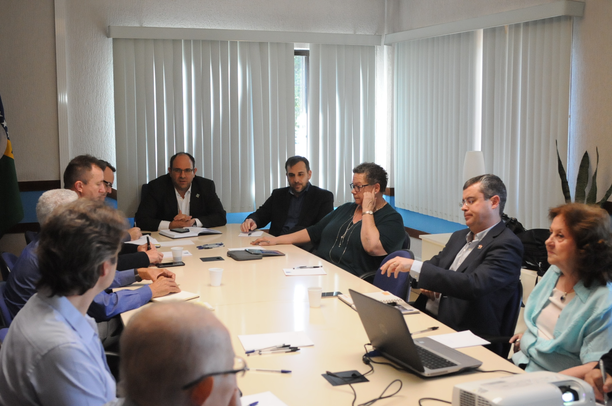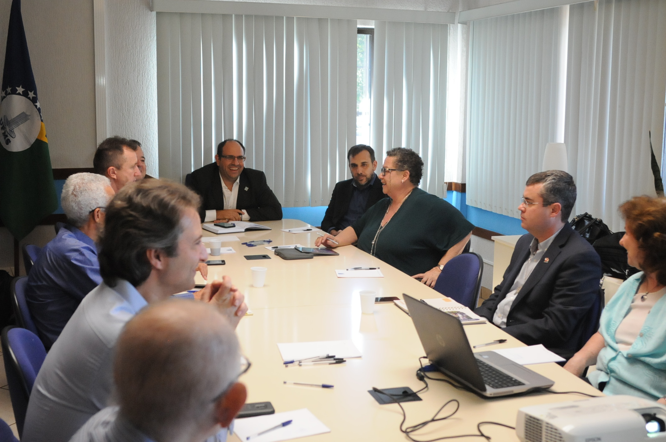 Entre os presentes na reunião estavam o pró-reitor Augusto Malheiros, o reitor Marcelo Turine, o secretário nacional do MEC Henrique Sartori, o secretário-adjunto Ricardo Senna e o reitor do IFMS Luiz Simão