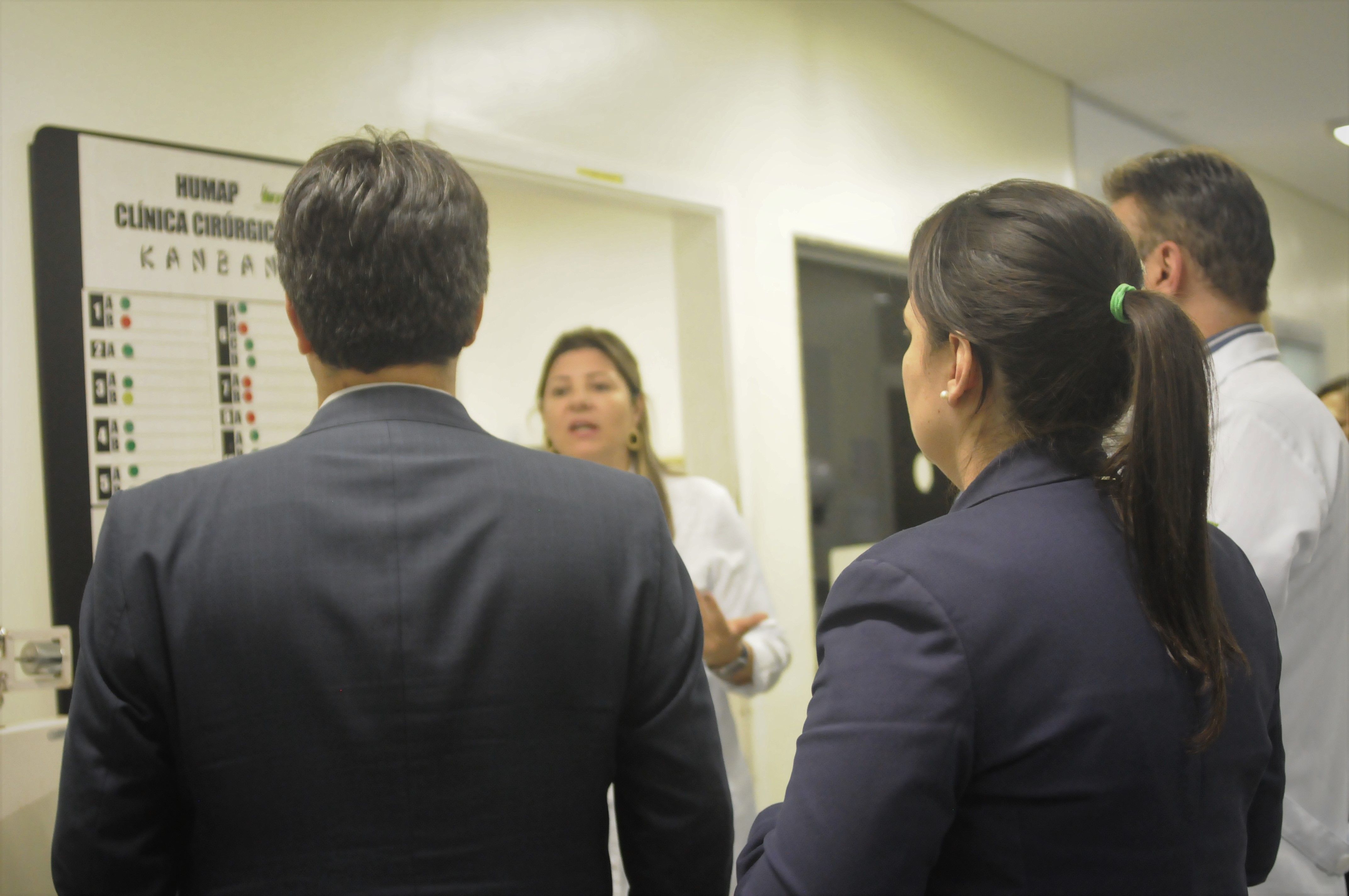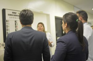 A visita também se estendeu ao setor da Unidade de Tratamento Intensivo (UTI), que atualmente atua com uma equipe multiprofissional, como afirma o chefe da Unidade de Cuidados Intensivos e Semi-intensivos, Jean Charles Monteiro Salgado. “Aqui nós temos desde médicos até terapeutas ocupacionais e cirurgiões dentistas, todos trabalhando de forma integrada para dar o melhor atendimento ao paciente. Inclusive, contamos também com a visita ampliada para os familiares. Eles passam por um treinamento e, em seguida, podem permanecer próximos aos leitos”.